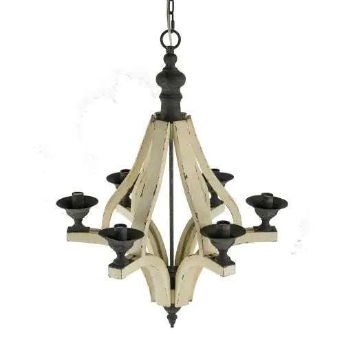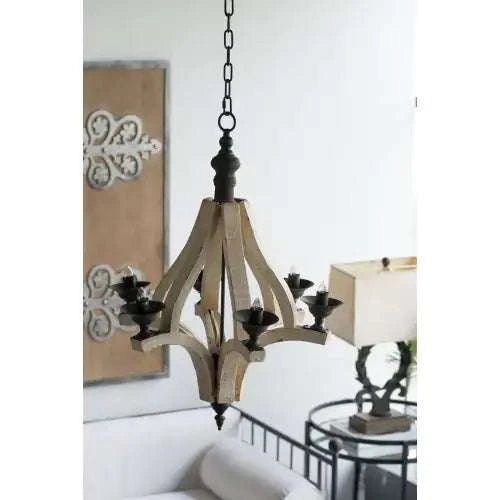 6 - Light Wood Chandelier With Adjustable Chain For Kitchen, Dining Hall Entrance, Bulb Not Included