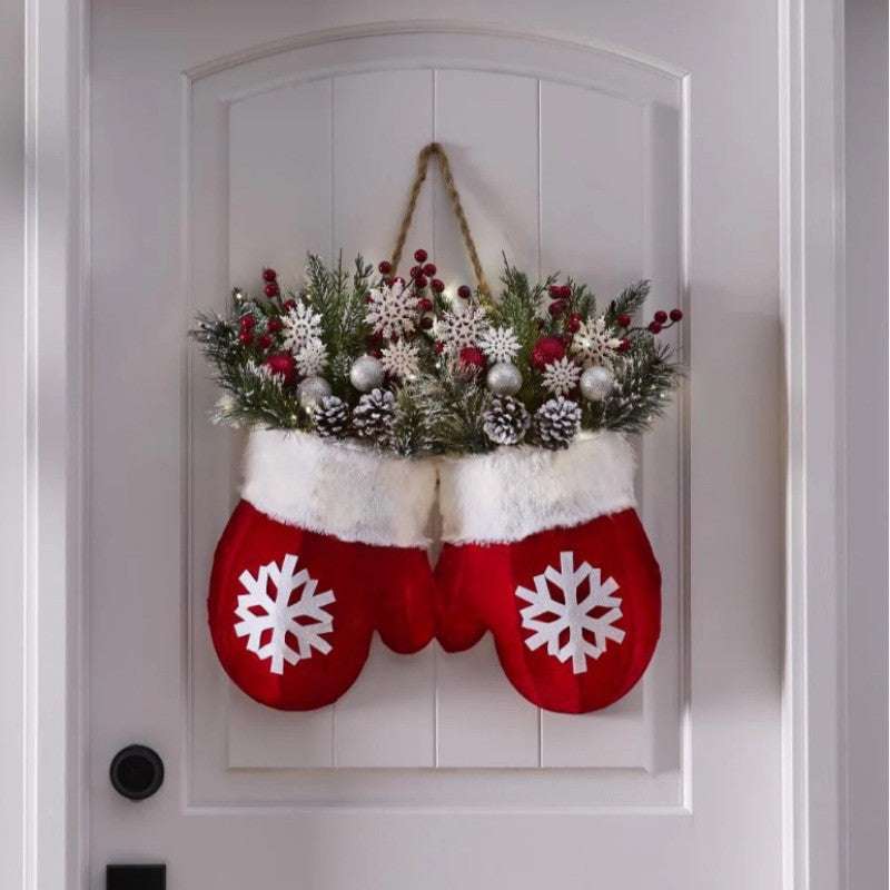 Christmas Garland Creative Glove Shaped Simulated Flower Wreath Window Door Gate Decoration Door Sign Xmas Party Decoration