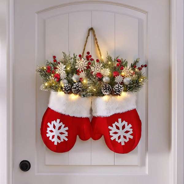 Overview: 1. Christmas Theme Gloves Door Wreath: This creative Christmas gloves wreath features a festive design with integrated light strings,...