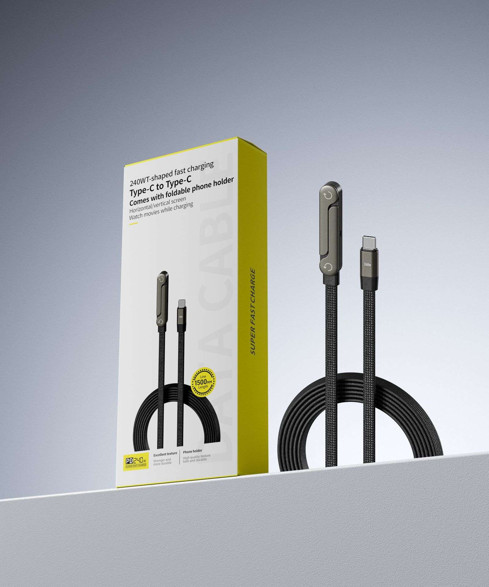 2-in-1 Fast Charging Foldable Bracket Data Cable for Phone Tablet Stand Type-C to Type-C and USB-A