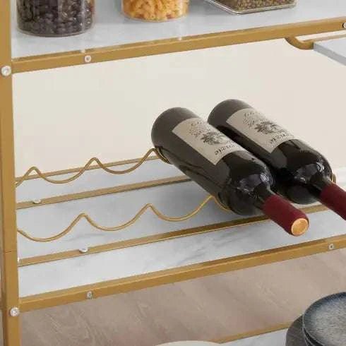 6-Tier Bar Cart, Slide Bar Serving Cart, Retro Style Wine Cart For Kitchen, Beverage Cart With Wine Rack And Glass Holder, Rolling Drink Trolley For Living Room, Dining Room