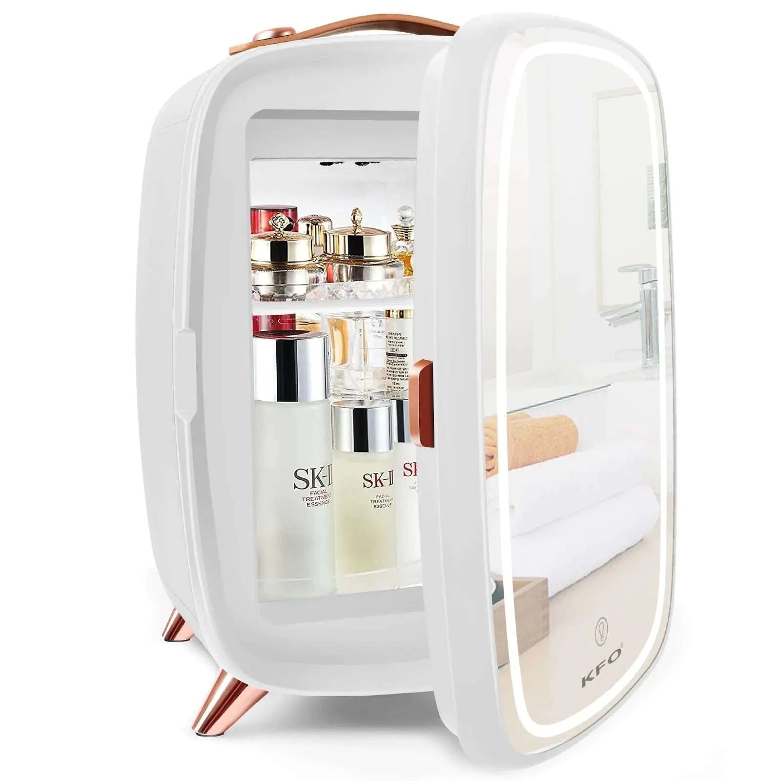 KFO Skincare Fridge Mini Fridge Skincare Mini Fridge6 Liter/8 Cans 3 LED Mirror Light ModeSkin Care Fridge Mini Skincare FridgeCosmetic Fridge Mini Fridge For Bedroom For Makeup Storage (White)