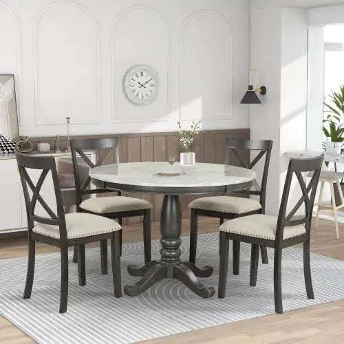 Orisfur. 5 Pieces Dining Table And Chairs Set For 4 Persons, Kitchen Room Solid Wood Table With 4 Chairs