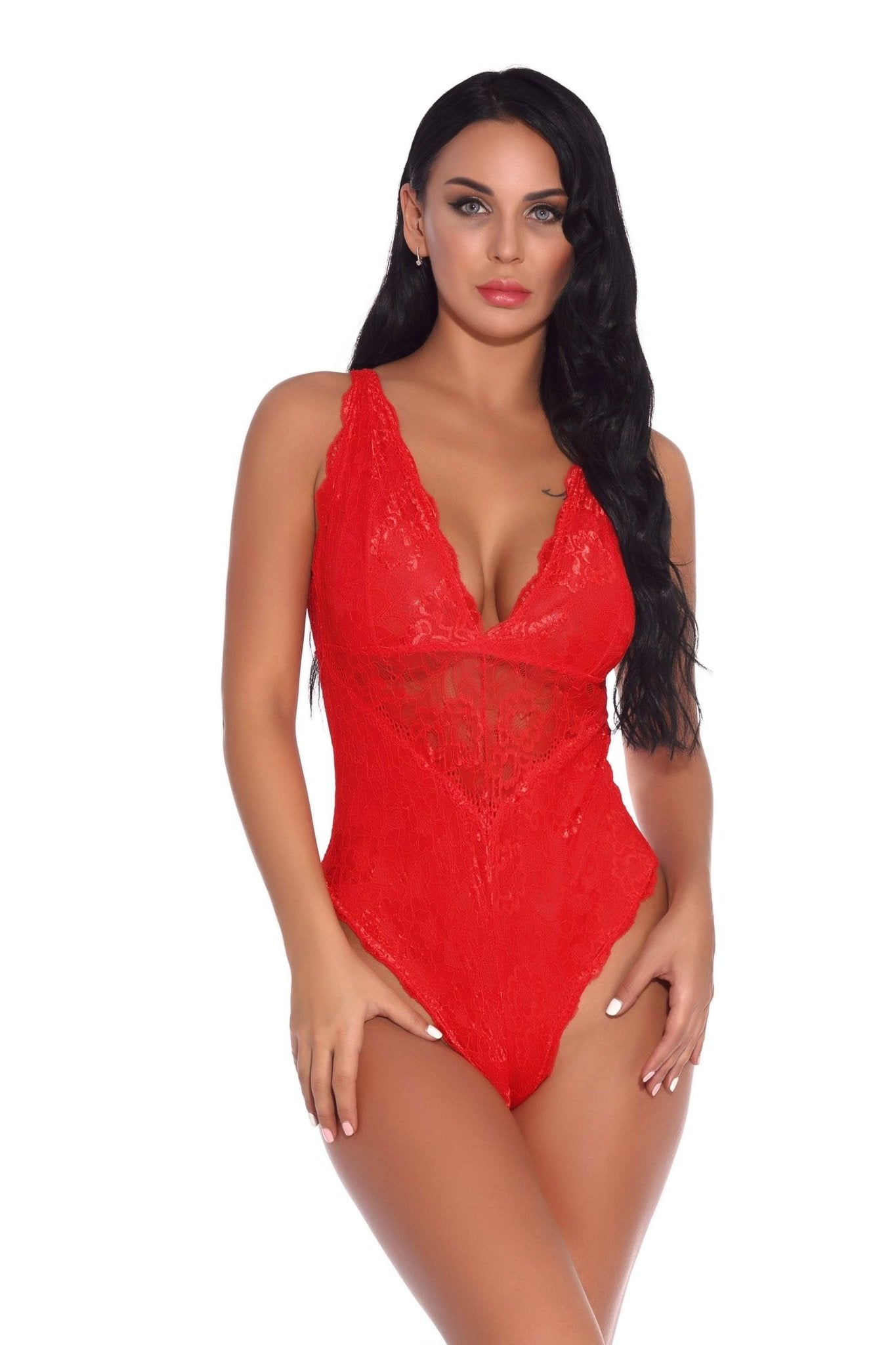 Sleeveless Halter Plus Size Lace Bodysuit Ladies