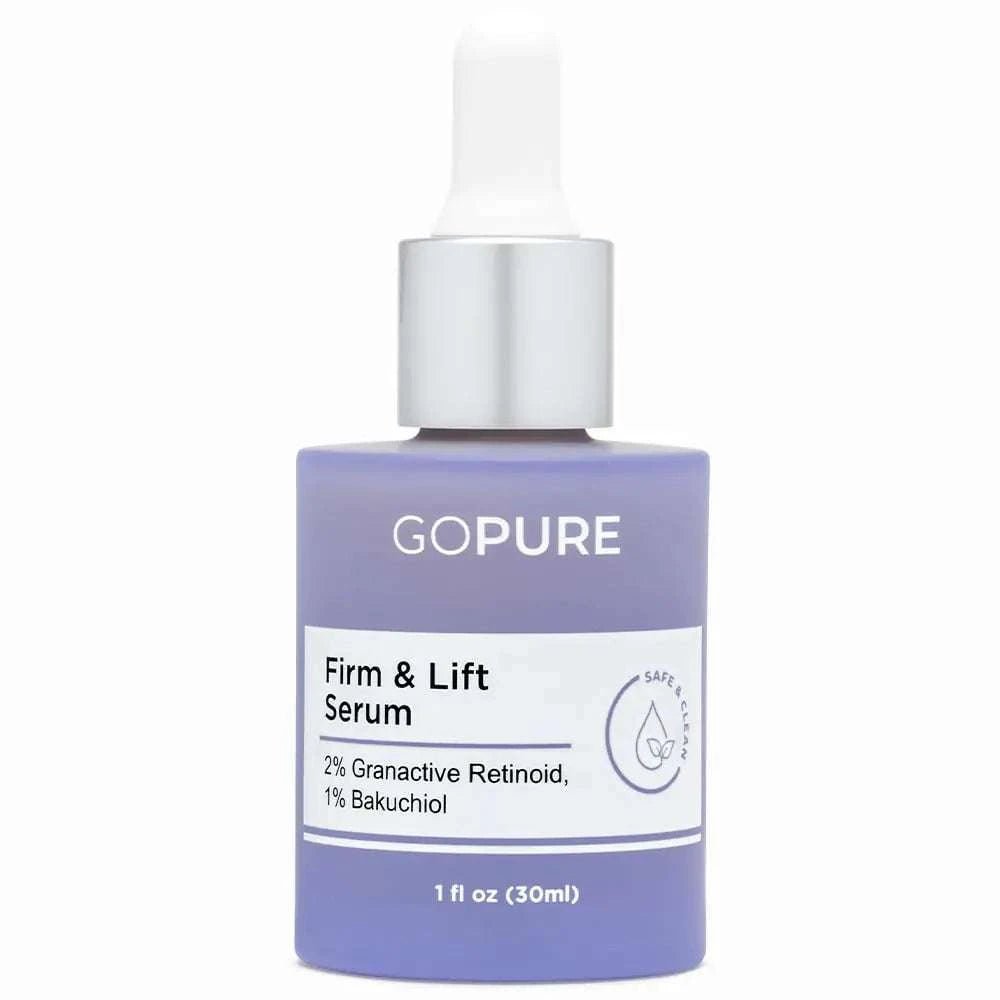 goPure Actives Firm & Lift Serum - Anti-Aging Serum with Retinol for more Smooth Even-Texture and Glowing Skin and Antioxidant Bakuchiol for Collagen Support and Firmer-Looking Skin - 1 fl oz
