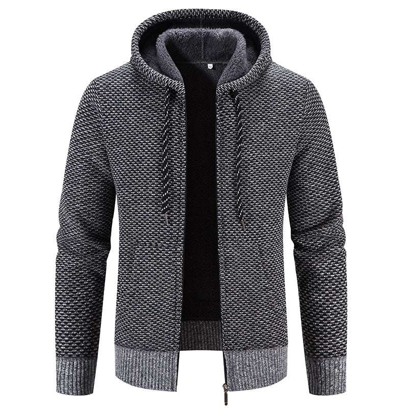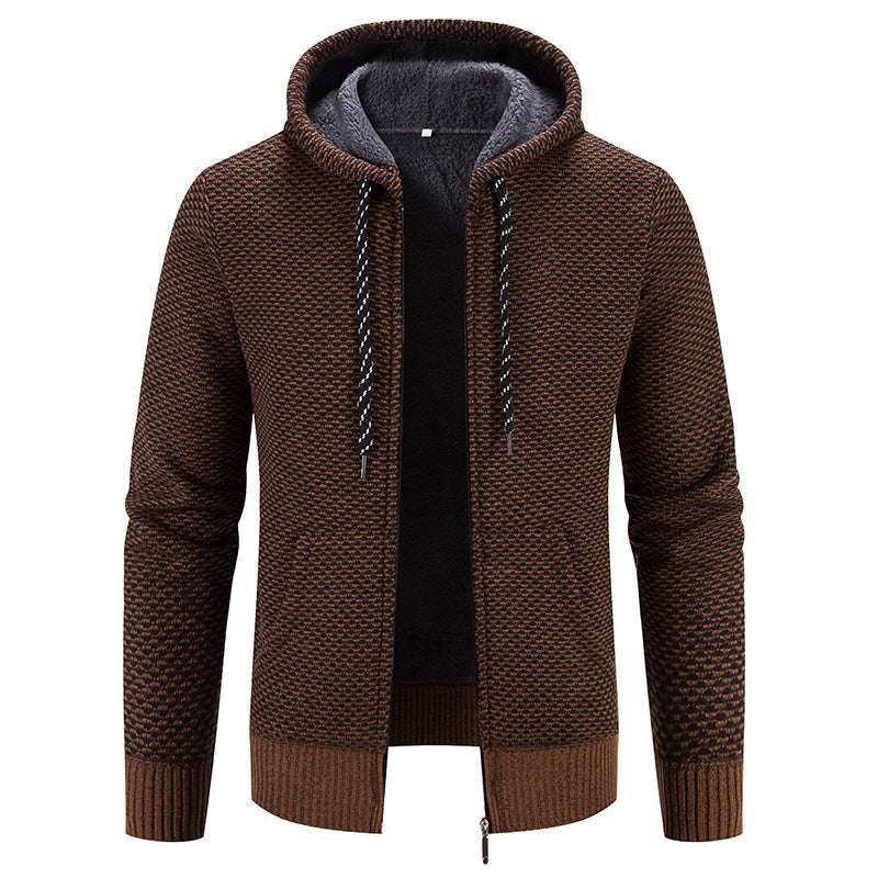 Winter Coat Zipper Closure Solid Color Long Sleeves Drawstring With Hat Keep Warm Casual Thicken Plush Sweater Coat For Daily