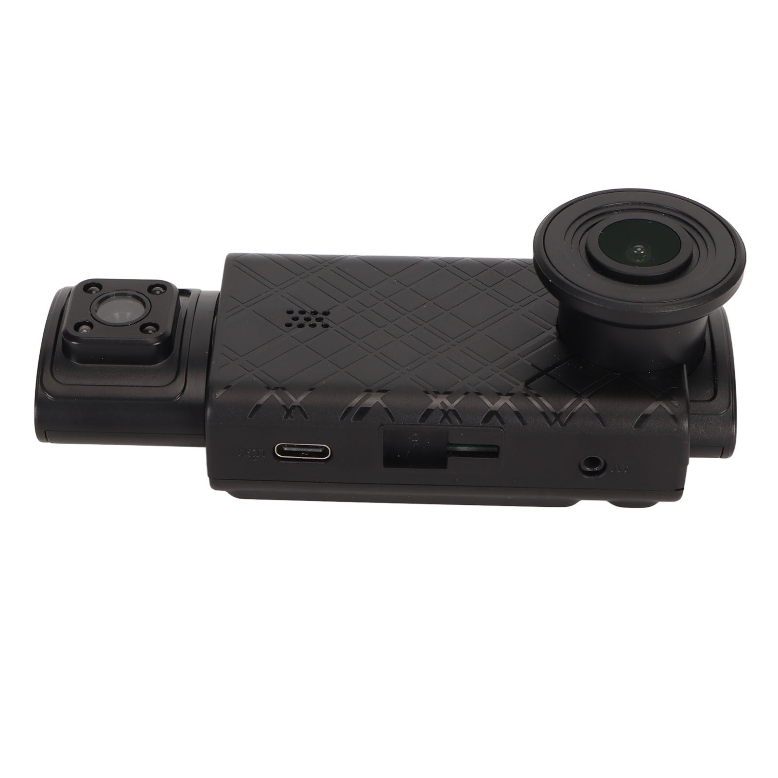 1、3 LENS PANORAMIC SYNCHRONIZED VIDEO RECORDING: The car recorder can realize synchronized video recording in front of the car, inside the car and behind the car. Shoot more comprehensive video. 2、LOOP RECORDING: The car DVR ensures that your camera will not stop recording when the storage space is full. The camera will automatically overwrite the oldest file on the memory card (Not Included). 3、STARLIGHT NIGHT VISION: 6 layer high transparency glass lens, 99.6% light transmission rate. Support recording front 170 degrees 1080P HD video, can also record rear 120 degrees 720P HD video. 4、INTELLIGENT MOTION DETECTION: Supports WDR wide dynamic image processing technology. No matter how bad the recording environment is, it can still ensure that the video is up to 1080P HD quality. 5、WATERPROOF REVERSING CAMERA: Large rearview shooting wide angle. No matter how harsh the environment you encounter, it will protect you. High definition picture quality.