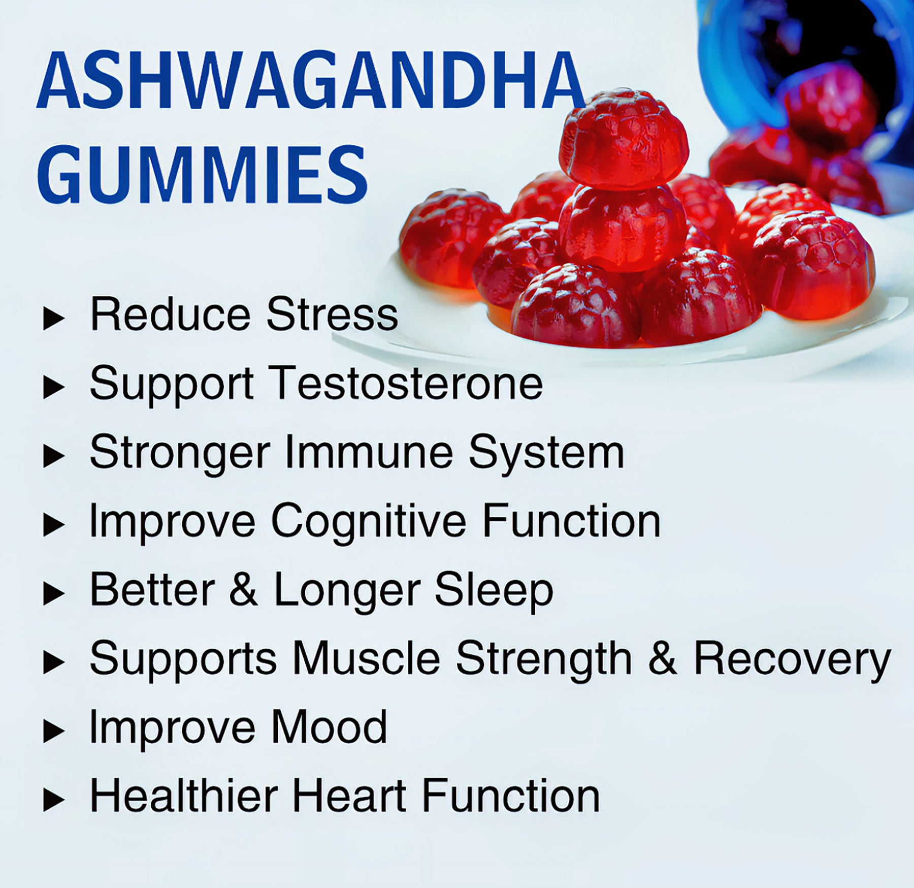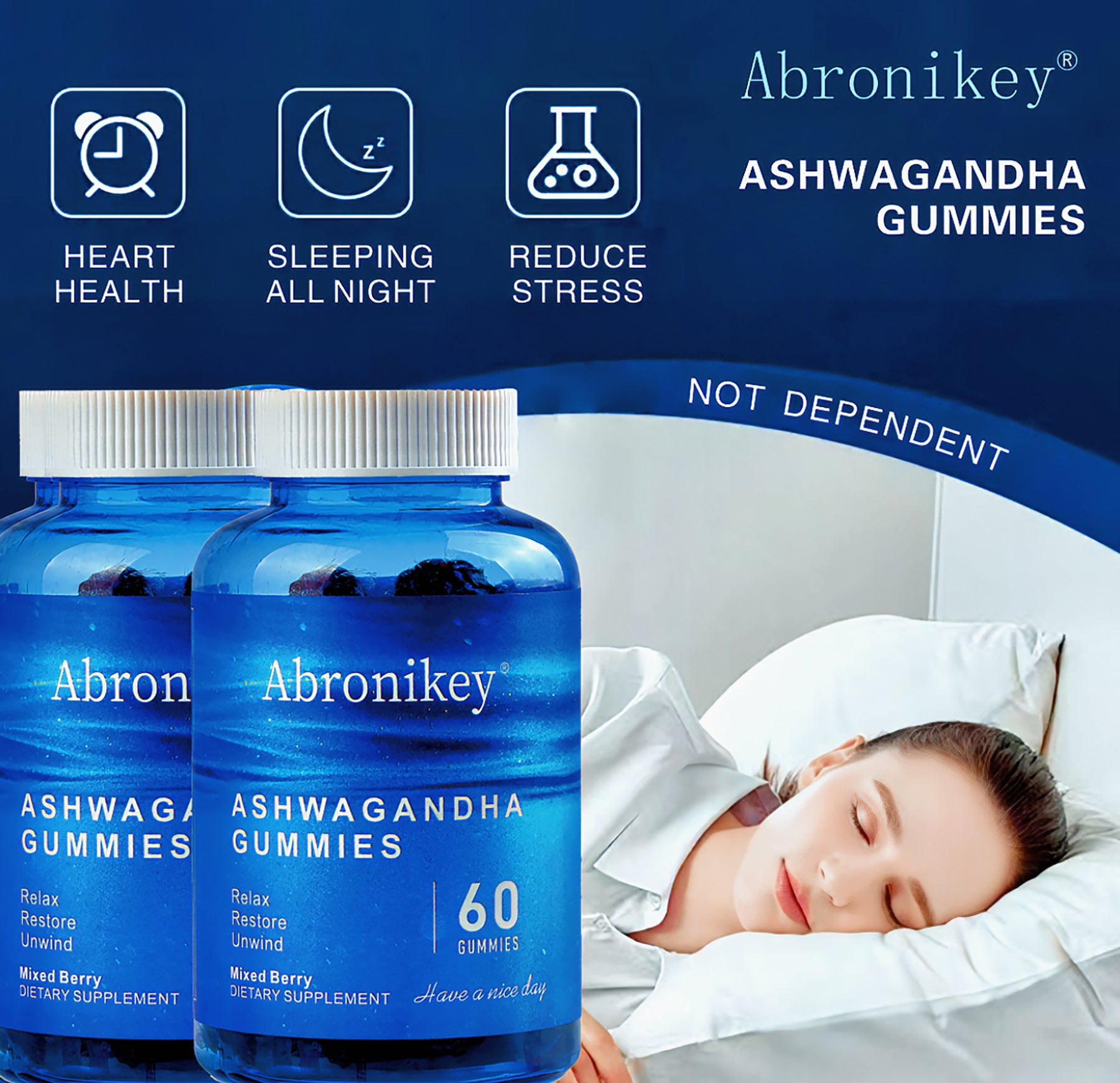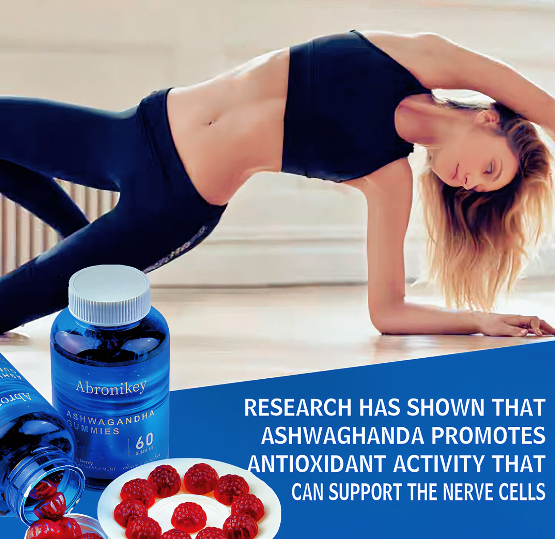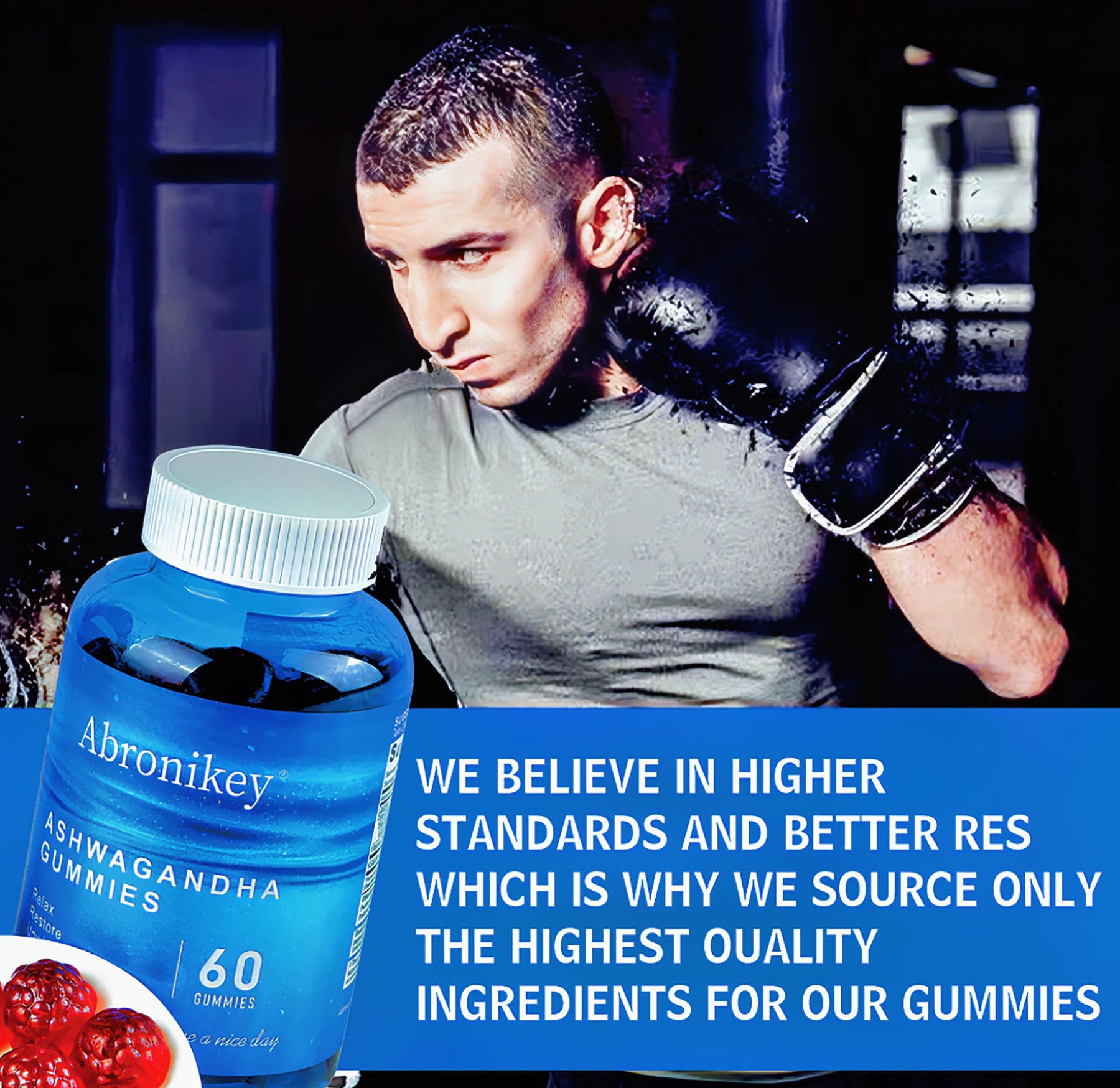 Abronikey Ashwagandha Vitamin D Gummy Mixed Berry, KSM-66, Vegan,Plant Based, Non-GMO, Gluten-Free Gelatin Free