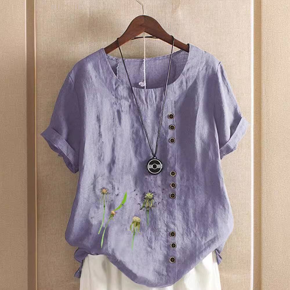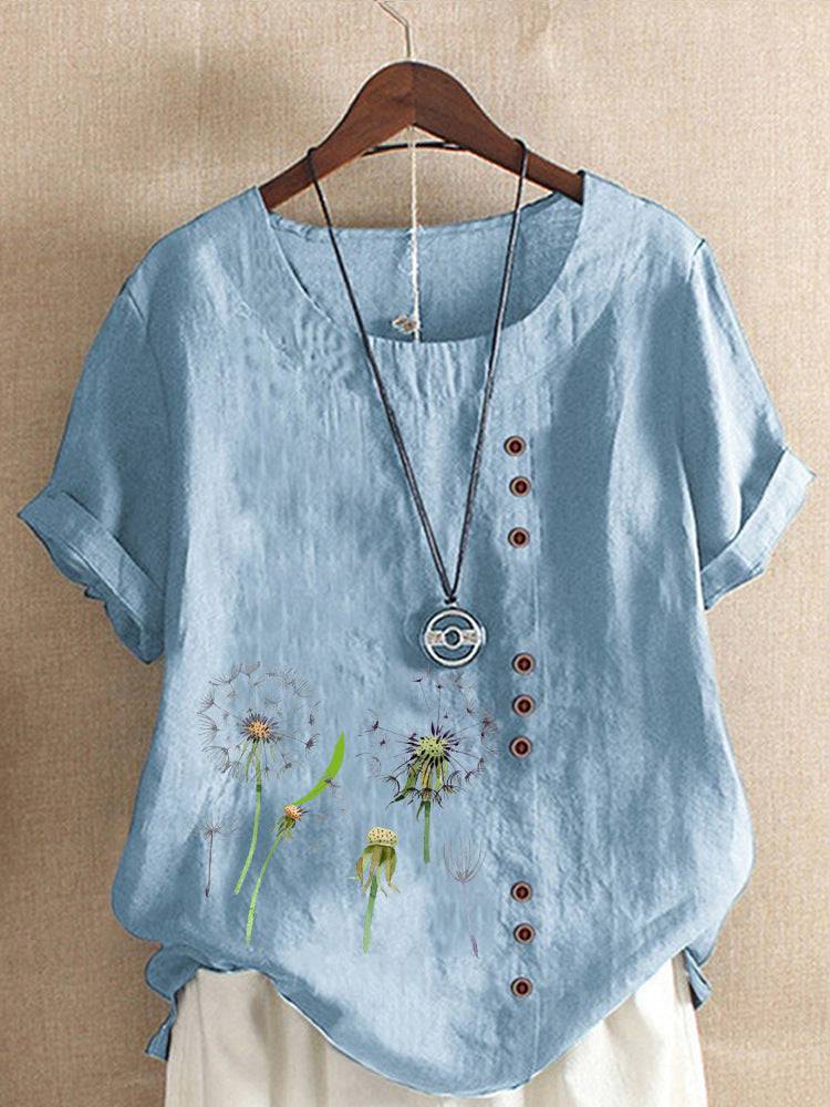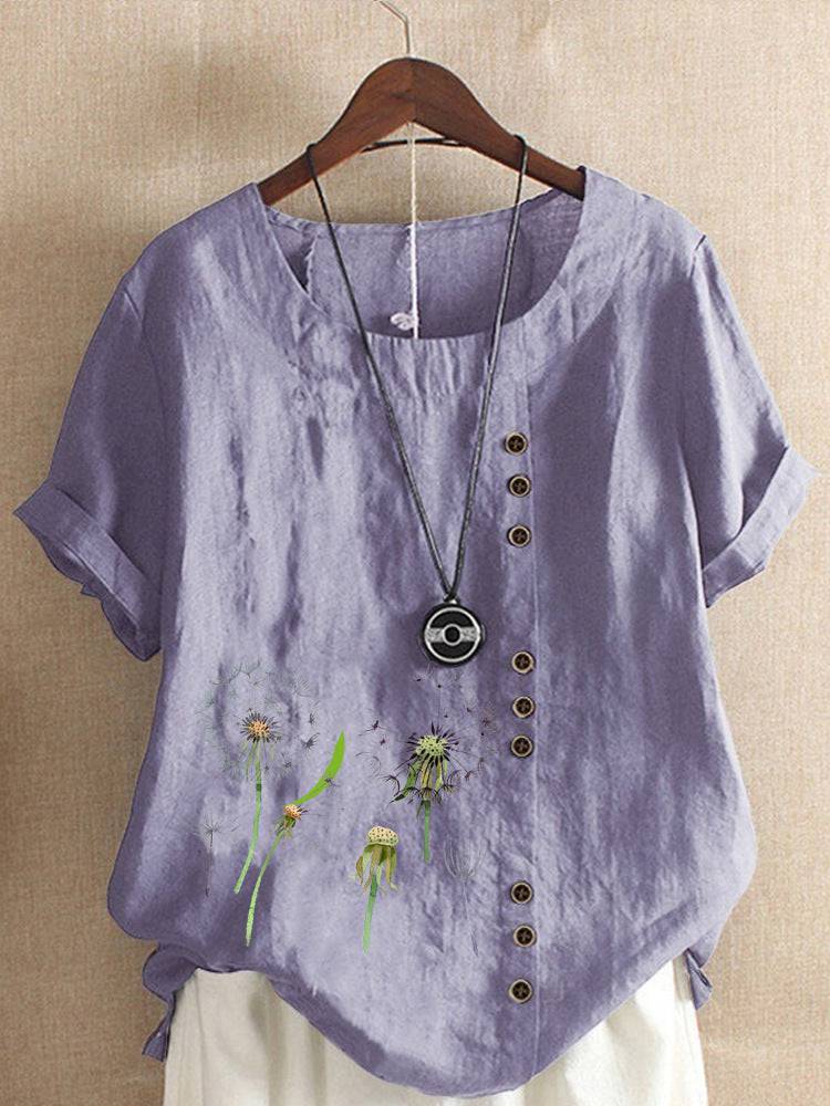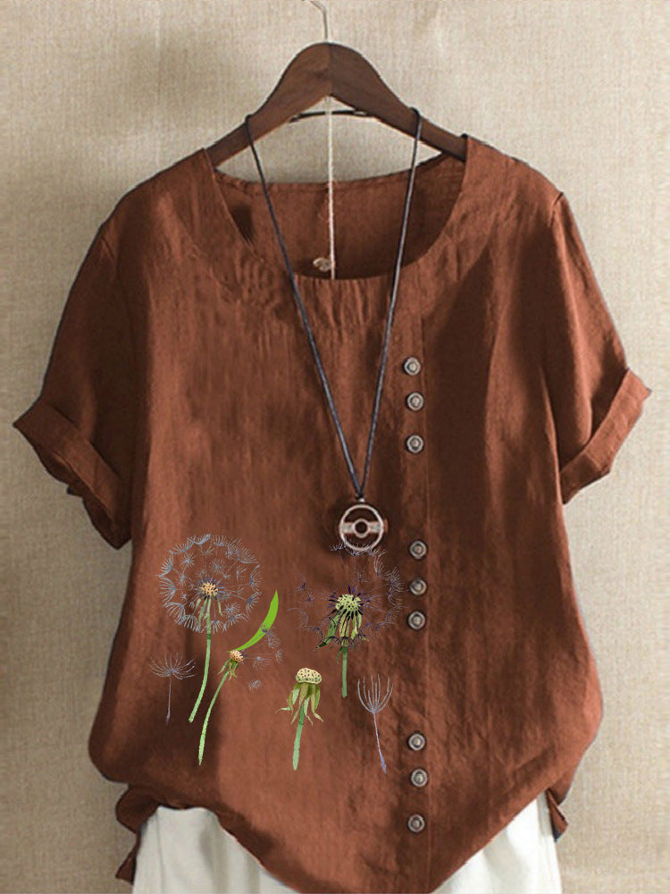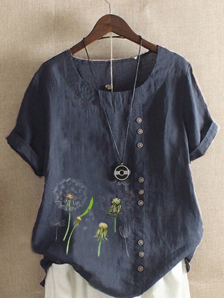 Artistic Retro Cotton And Linen Printed Casual Shirt Women's Top