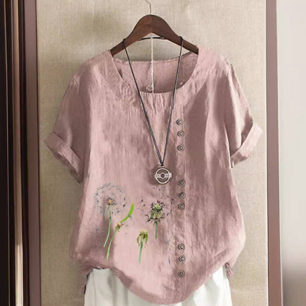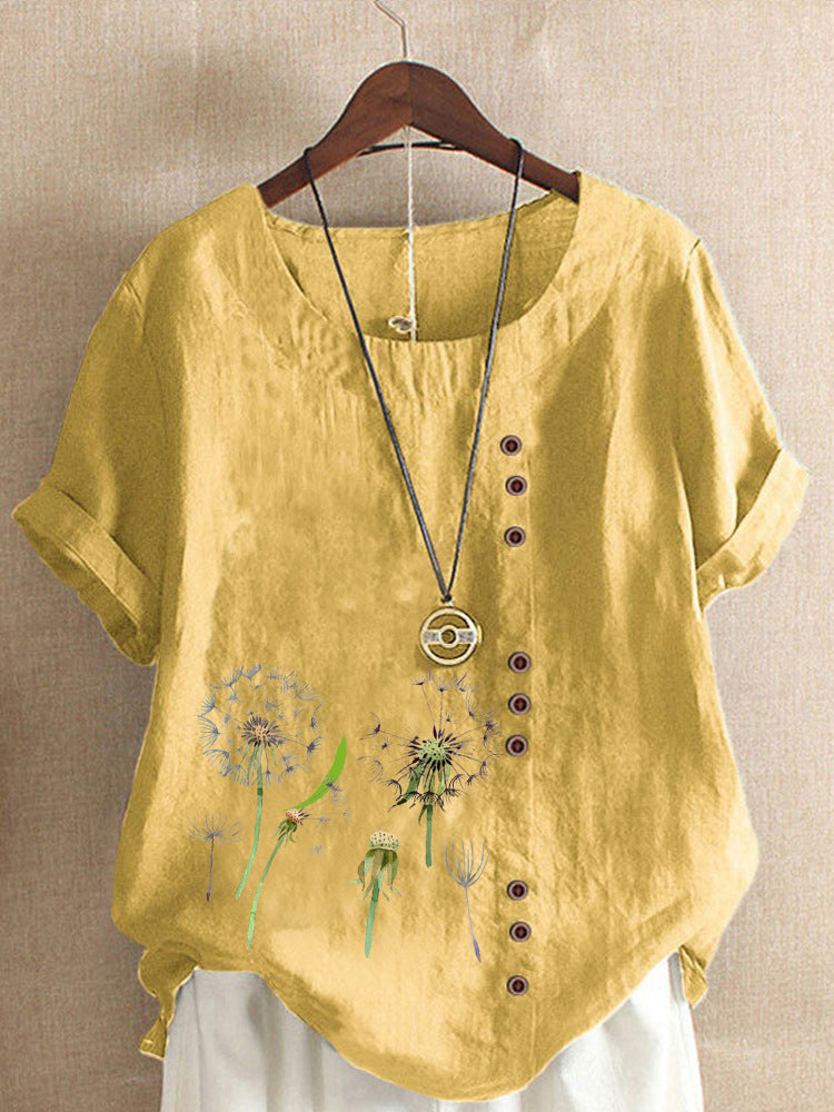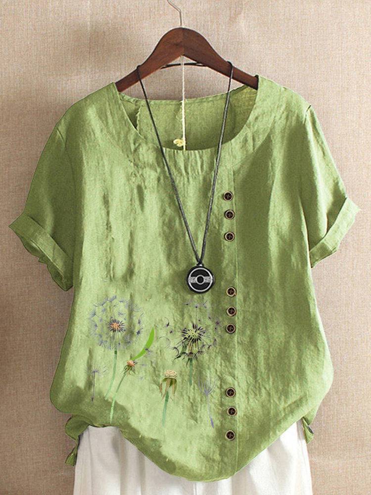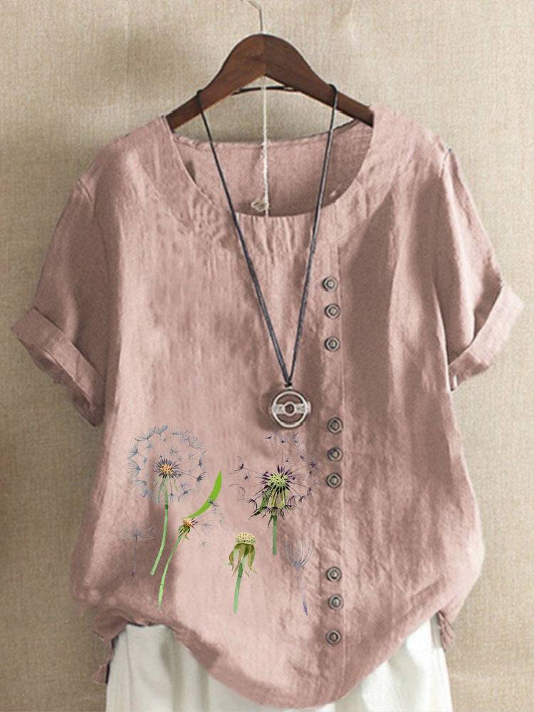 Artistic Retro Cotton And Linen Printed Casual Shirt Women's Top