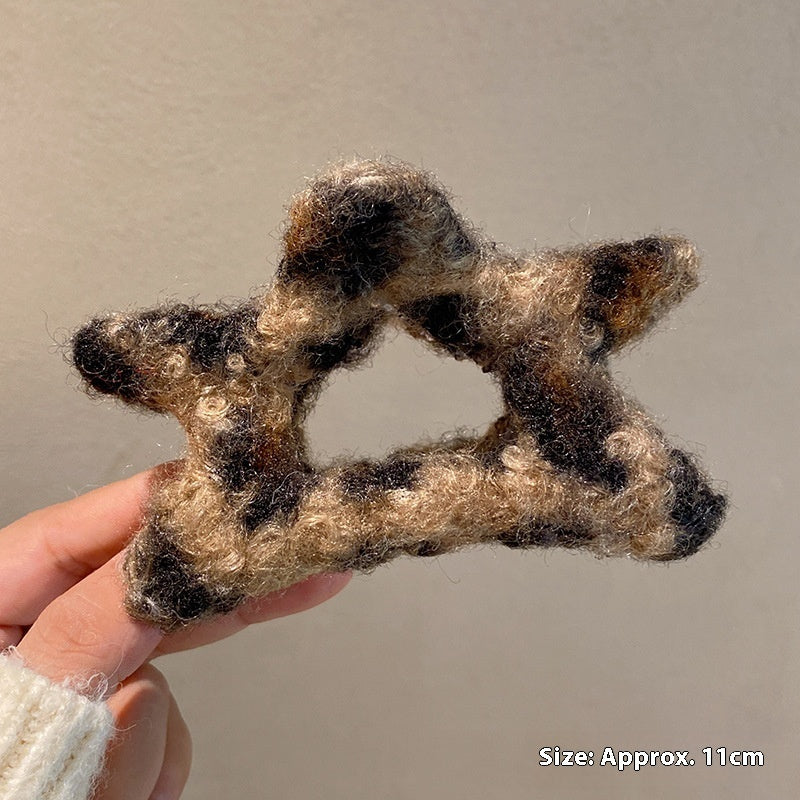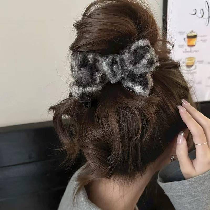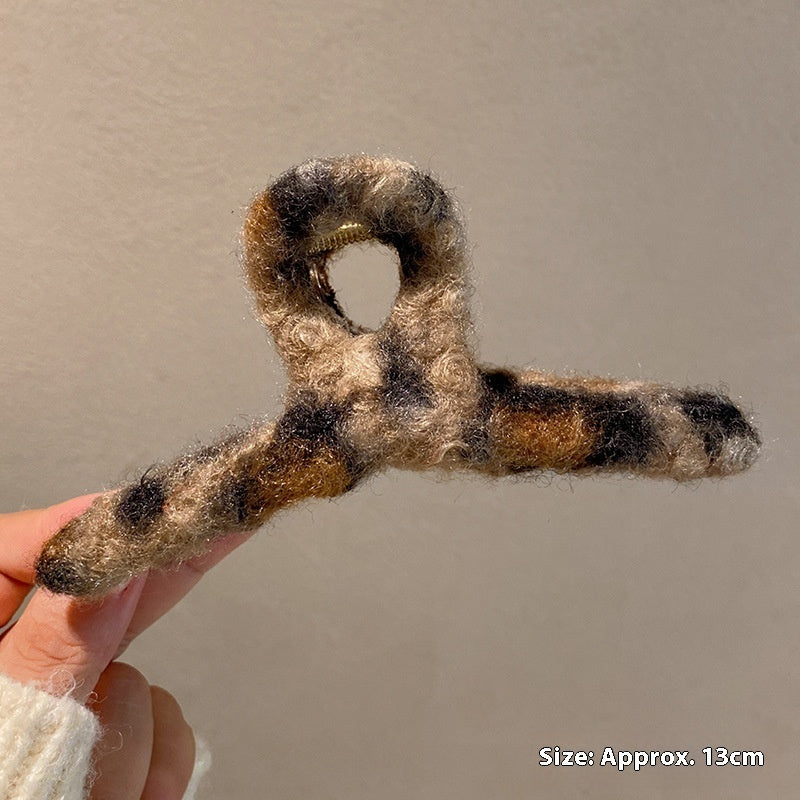Autumn And Winter Plush Leopard Bow Balls Clip Temperament Female Updo Shark Clip