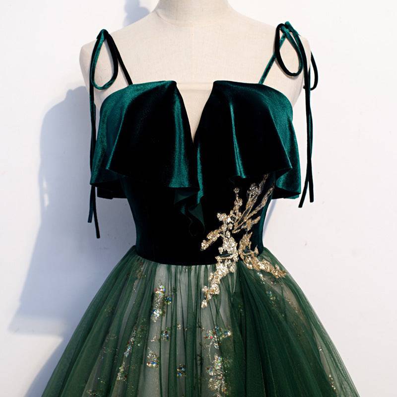 Banquet Sling Temperament Long Dress Dark Green Fantasy Mori