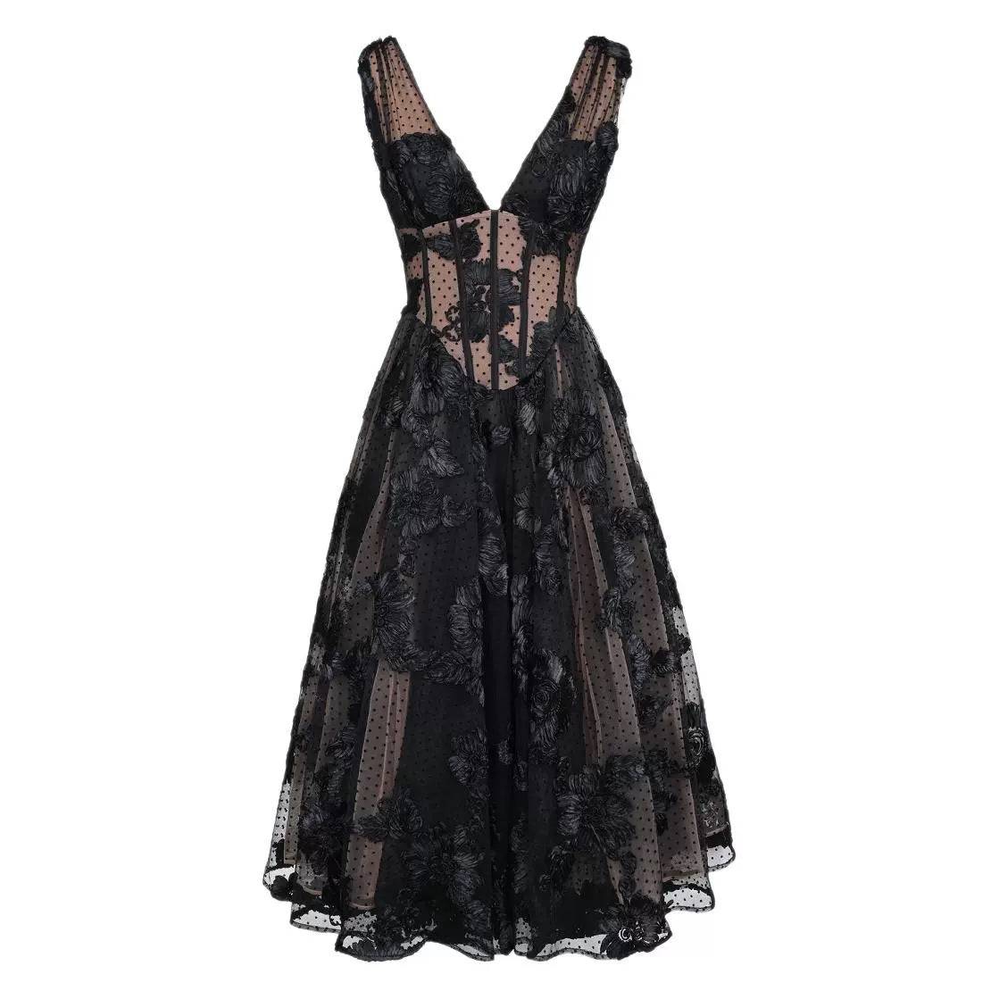 Black Deep V-neck Mesh A- Line High-end Evening Dress
