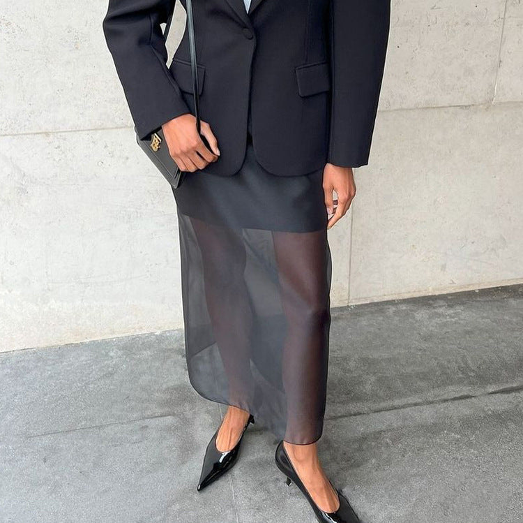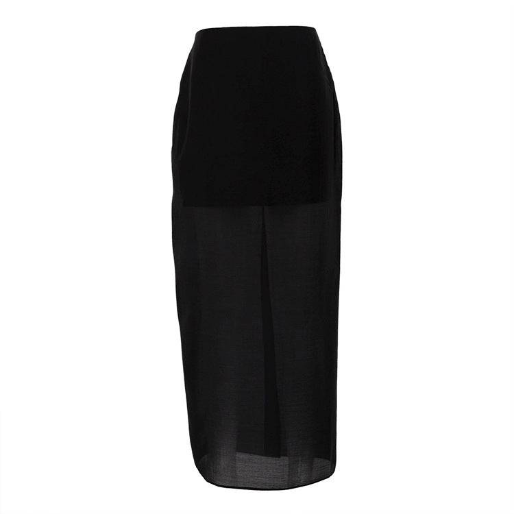 Black Mesh See-through High Waist Slit Sheath Skirt