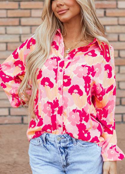 Blooming Floral Print Puff Sleeve Buttoned Shirt