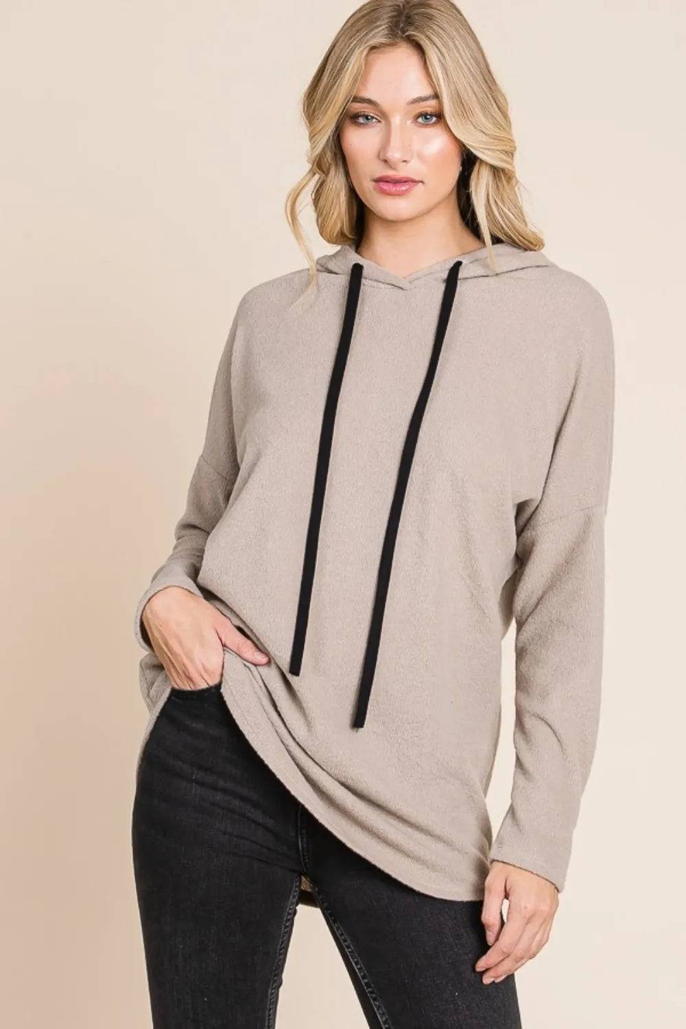 BOMBOM Contrast Drawstring Drop Shoulder Knit Hoodie