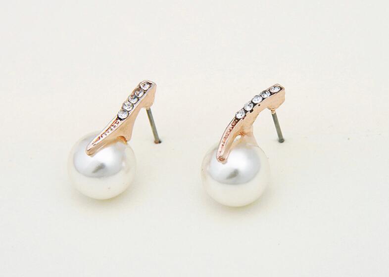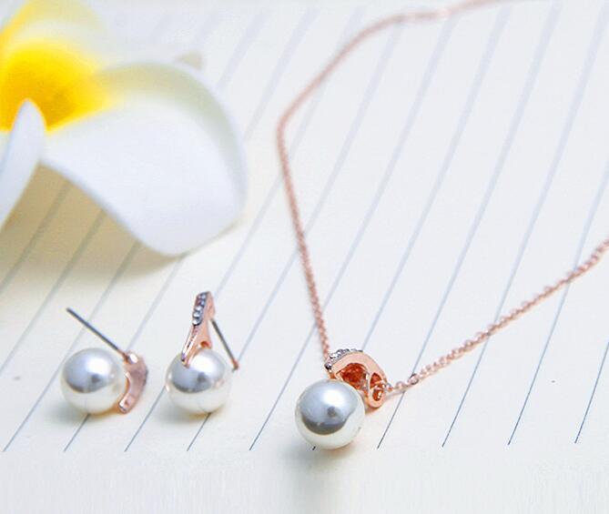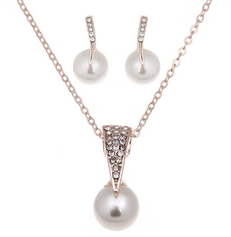 Bride Rhinestone Pearl Earrings Necklace Set Banquet Dress Jewelry
