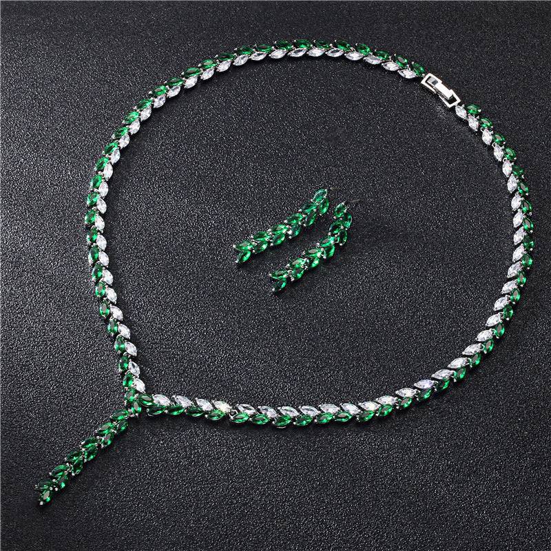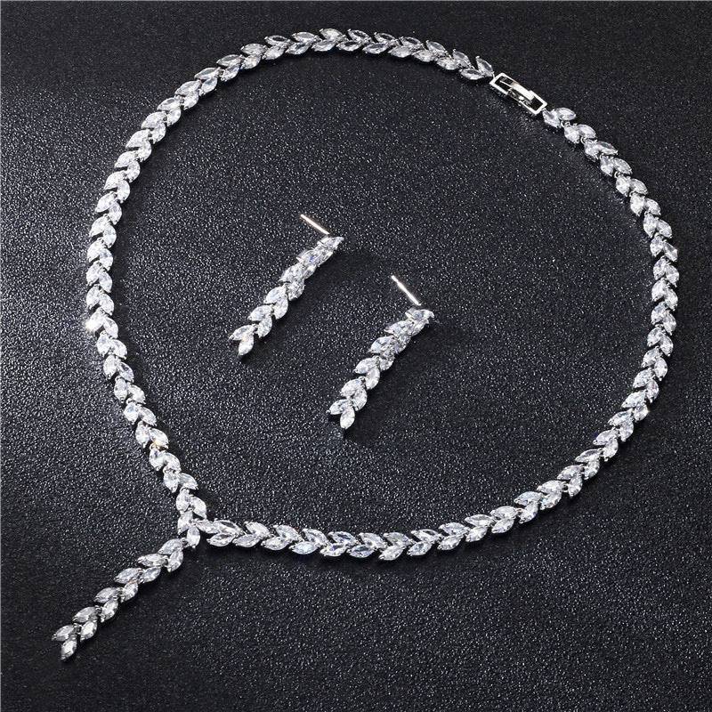 Product information: Style: Natural Material: Copper Treatment process: inlaid zircon Style: Women's Set combination earrings + necklaces Inlay material: zircon... Read more