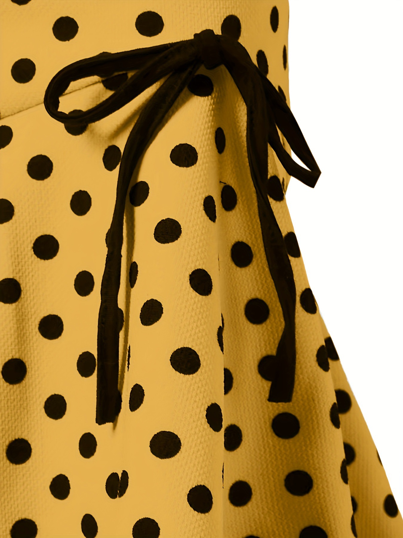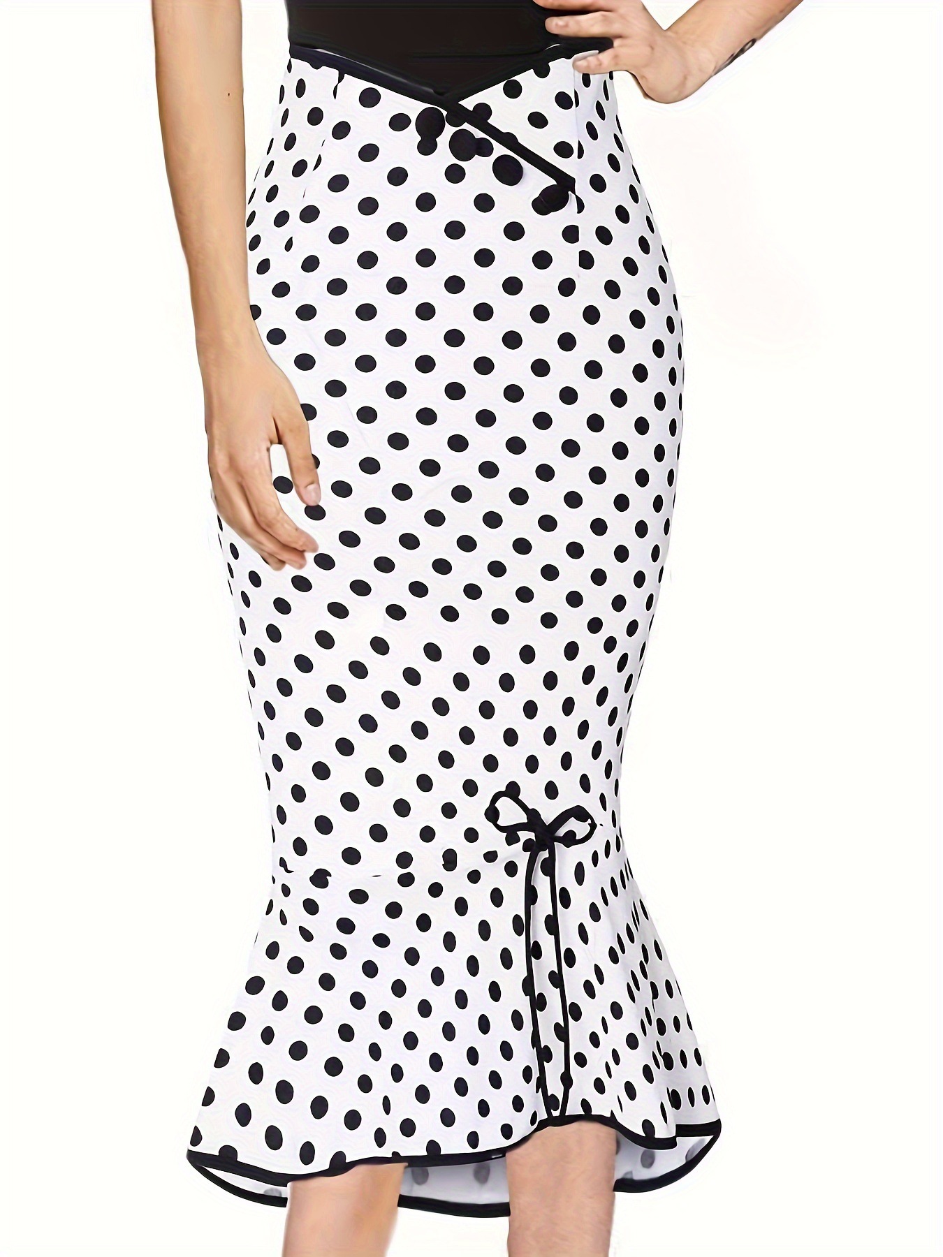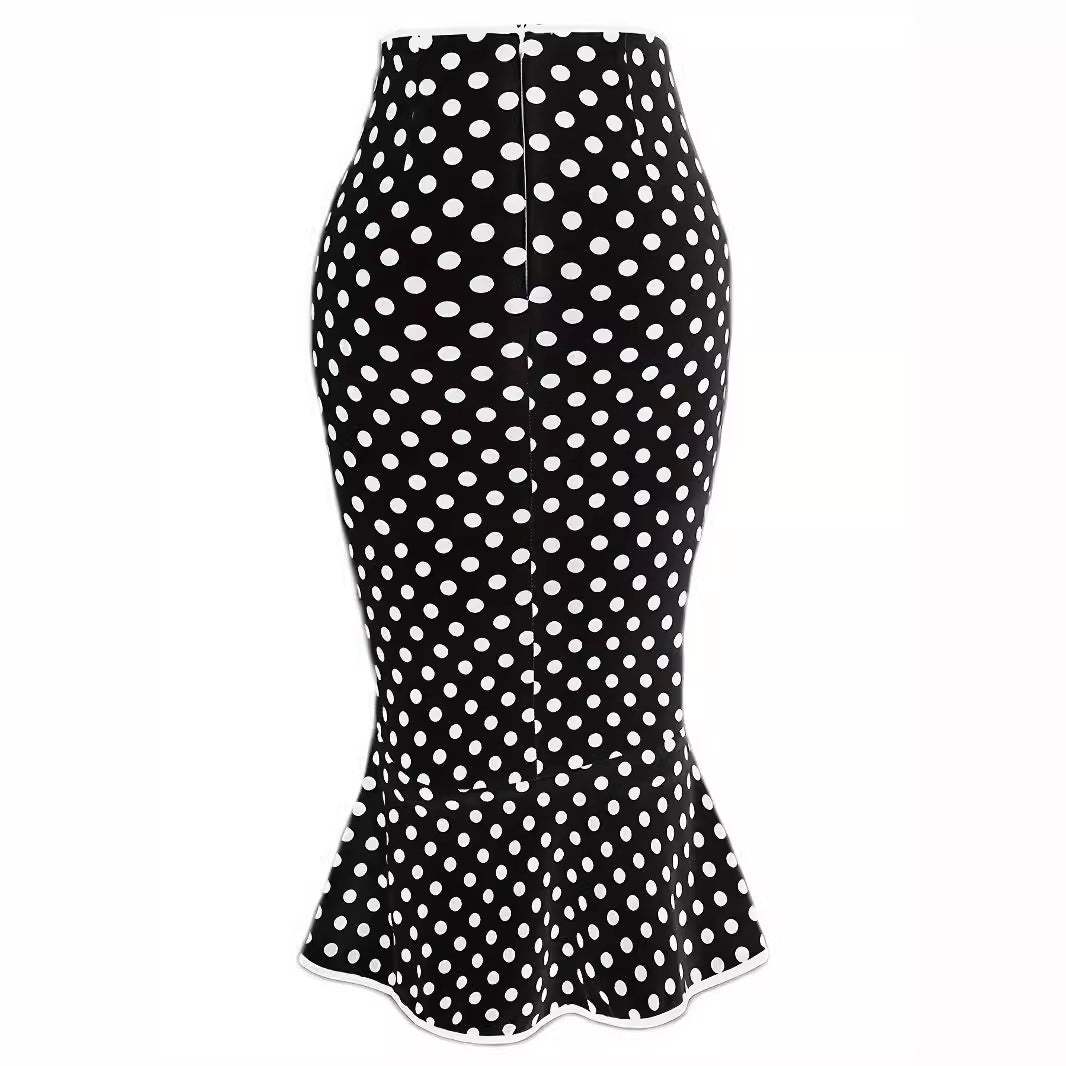 Product information: Pattern: Dots Fabric name: cotton blend Skirt type: fishtail skirt Color: white, black, yellow Size: S,M,L,XL,XXL Skirt Category:... Read more