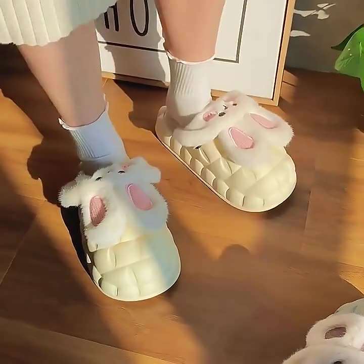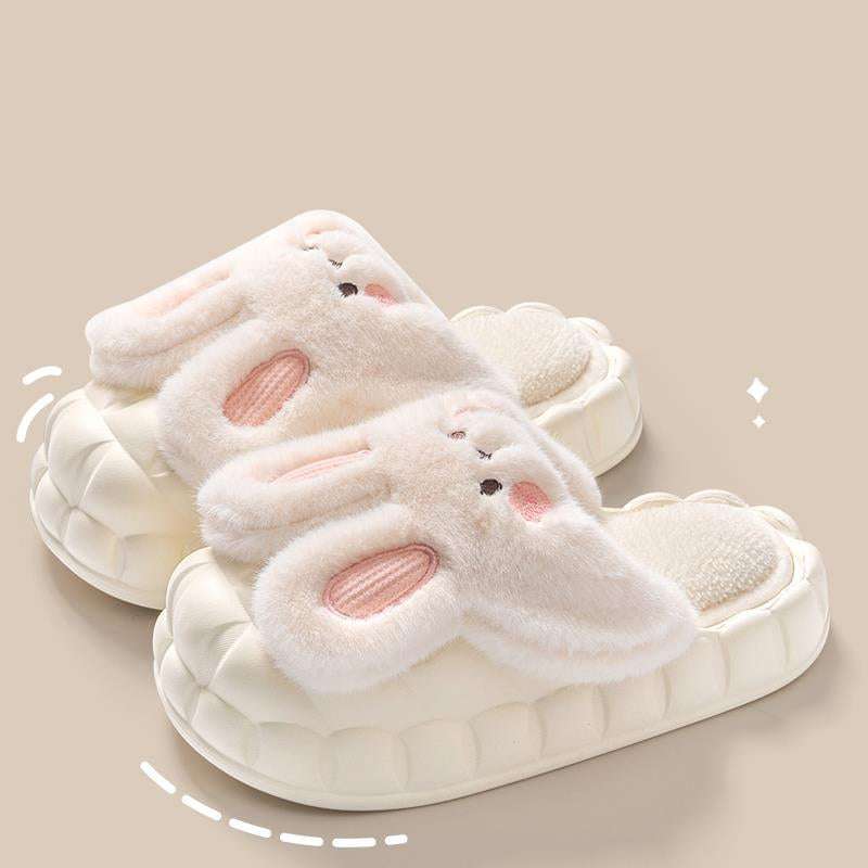 Cute Rabbit Shoes Winter Fuzzy Slippers Women Detachable Washable House Shoes