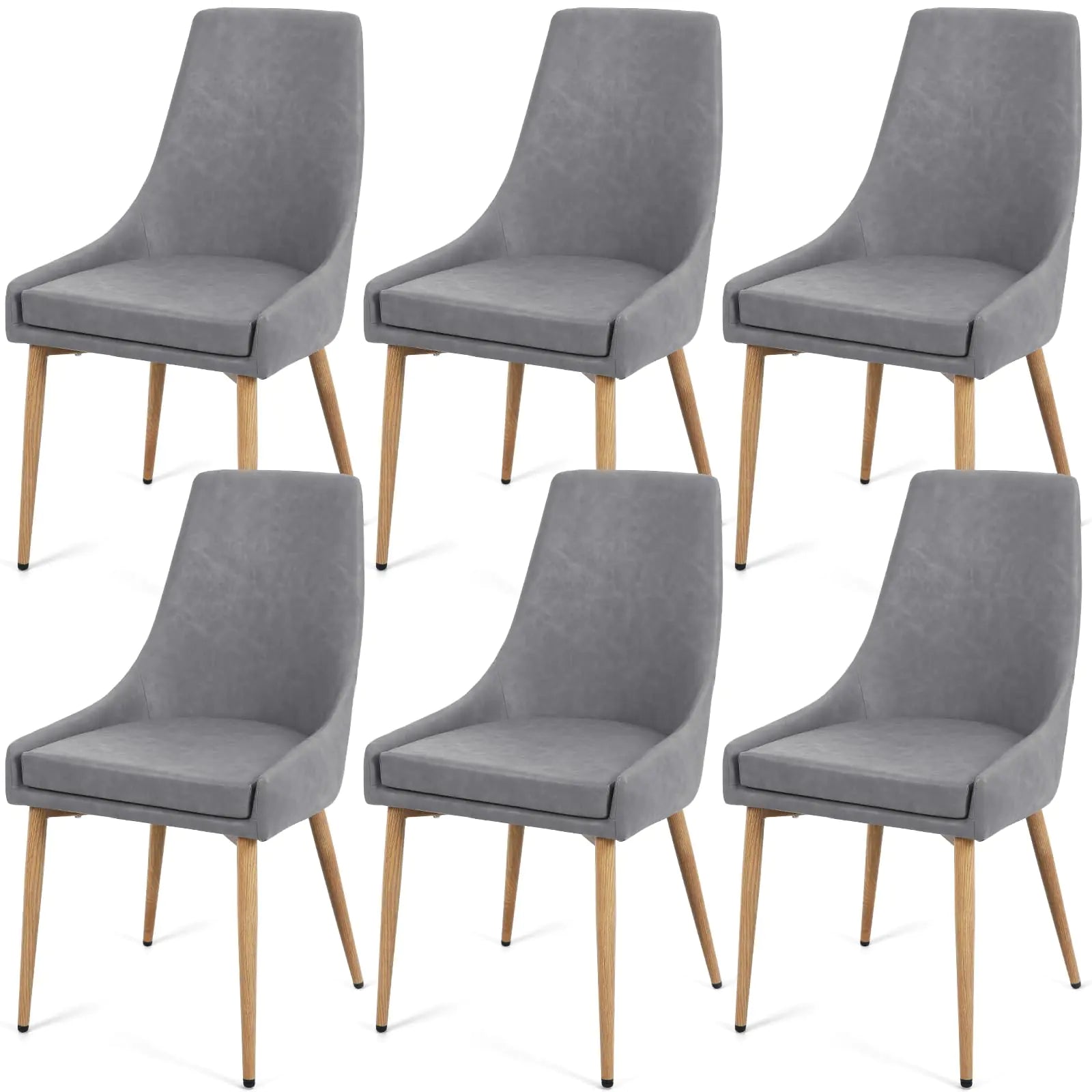 E&D FURNITURE Dining Chairs Accent Living Room Chair Set of 6 Retro Faux PU Leather Grey Kitchen and Dining Room Chairs 6 Pack Fabric Dining Comfy Upholstered Chairs Sillas para Comedor