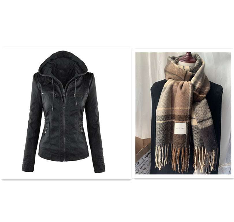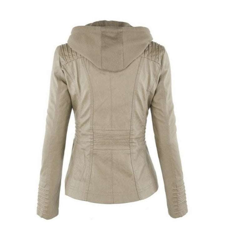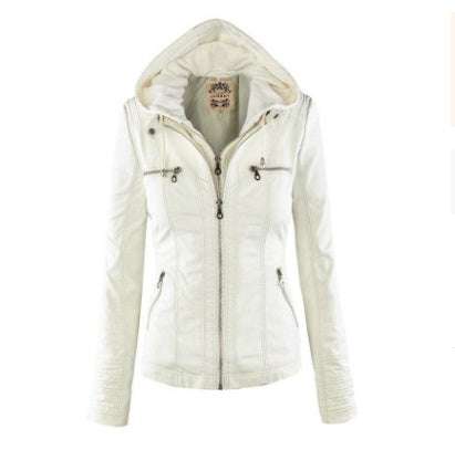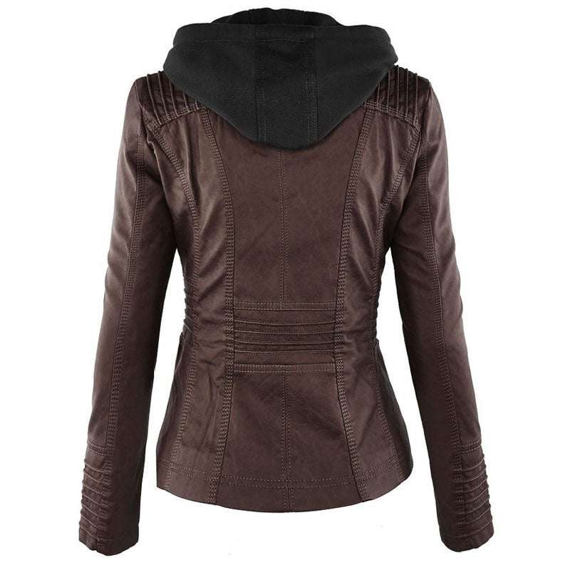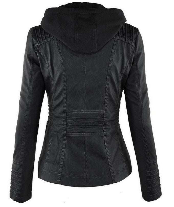 Fashion Detachable Hooded Jacket With Pockets Casual Solid Color Zipper Long Sleeve Leather Coat Autumn Winter Women's Clothing