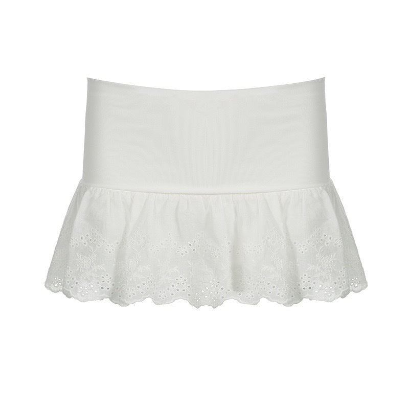 French High Waist Elastic Double Layer Lace Stitching Pantskirt