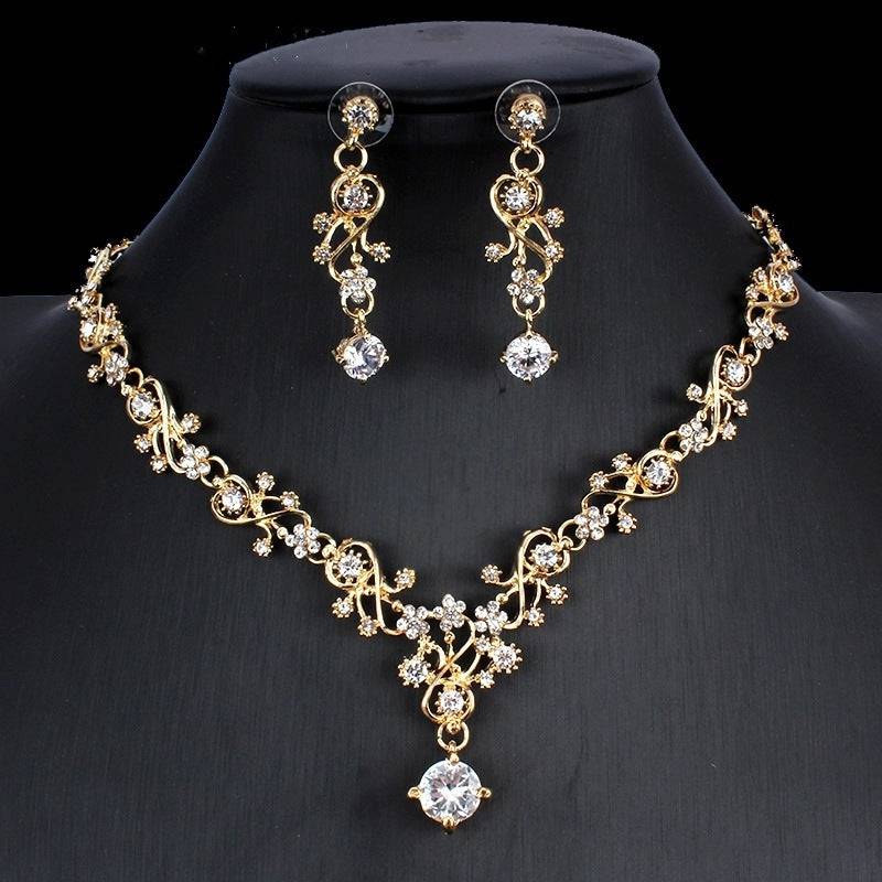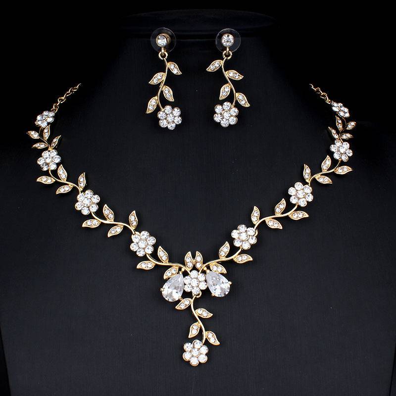 Golden Zircon Jewelry Set Bridal Necklace Earrings Wedding Two-piece Set