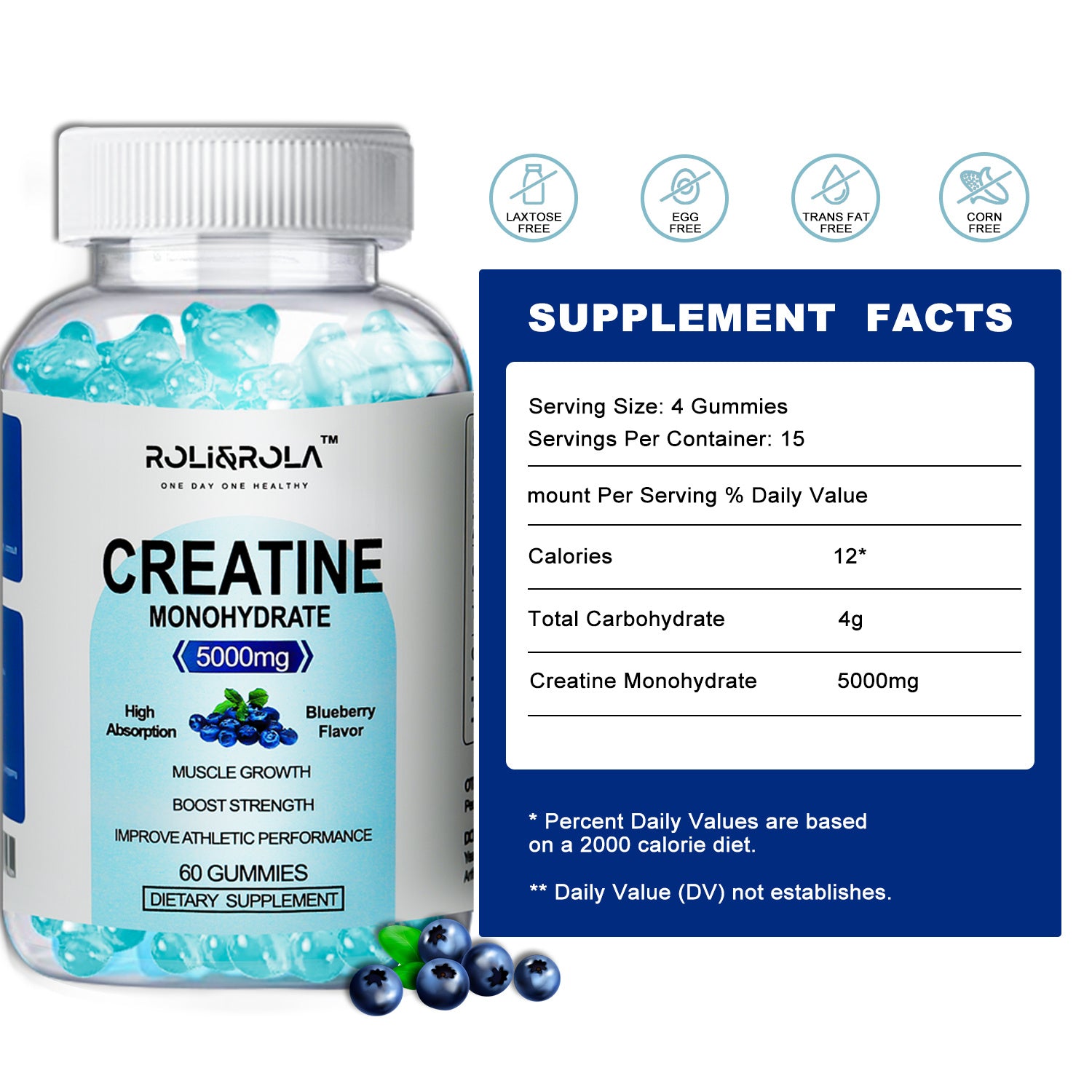 High Strength Creatine Monohydrate Gummies, Blueberry Flavored Creatine Gummies Monohydrate - 60 Gummies X 2 Bottles