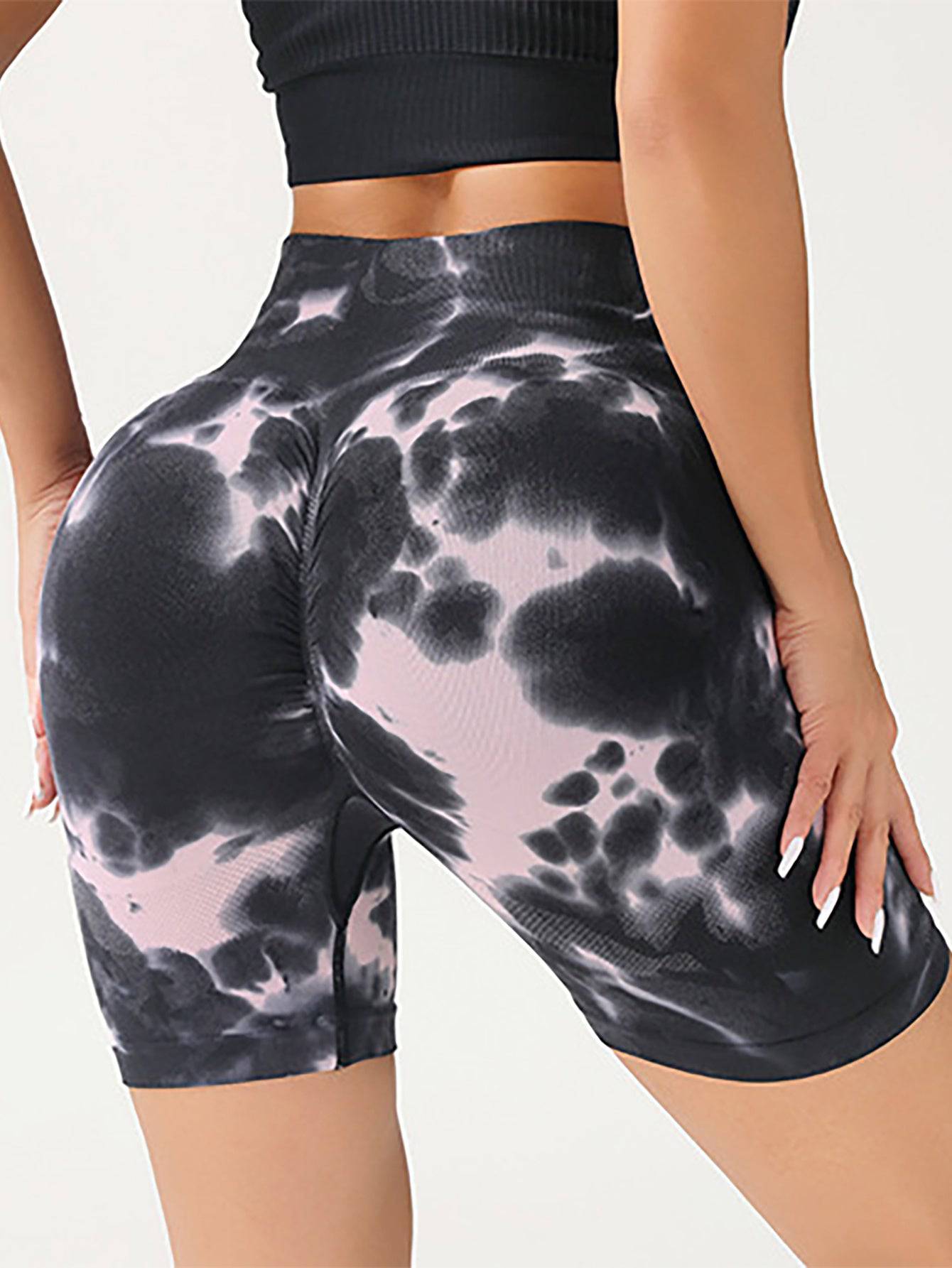High Waist Tummy Control Yoga Shorts For Women, Tie-Dye Ruched Booty Lifting Workout Fitness Shorts, Hip Lifting Sports Activewear, Gym Exercise Running Shorts
