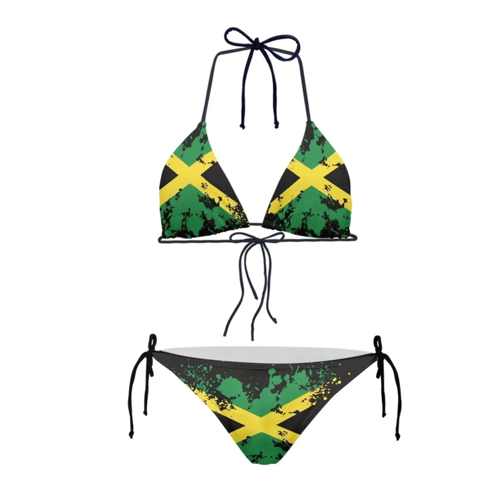 JEOCODY Jamaican Swimsuits for Women High Waisted Bikini Sets for Beach Womens Triangle Bikini Floral String Bikini Set Two Piece Swimsuit Bathing SuitsJamaican Flag Print