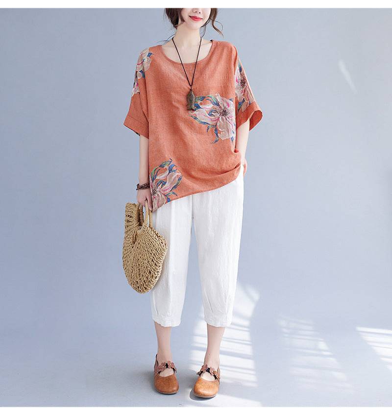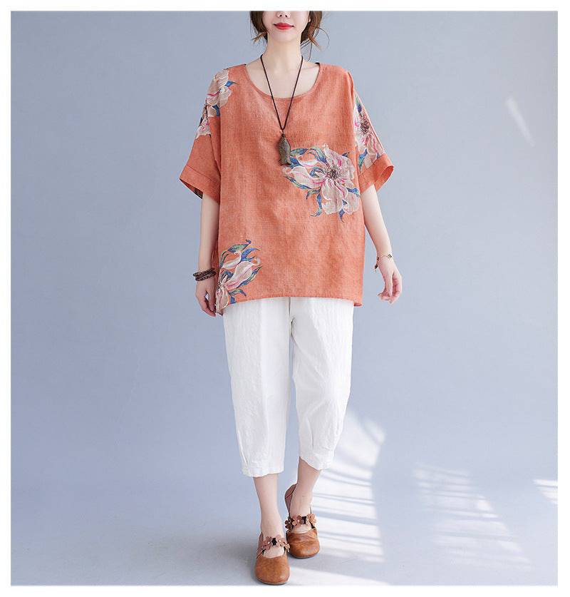 Korean Cotton Hemp Fat Mm Half Sleeve Top Summer
