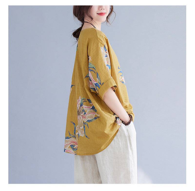 Product information: Pattern: Printing Fabric name: cotton and linen Color: yellow, orange Sleeve type: conventional sleeve Main fabric composition: Cotton... Read more