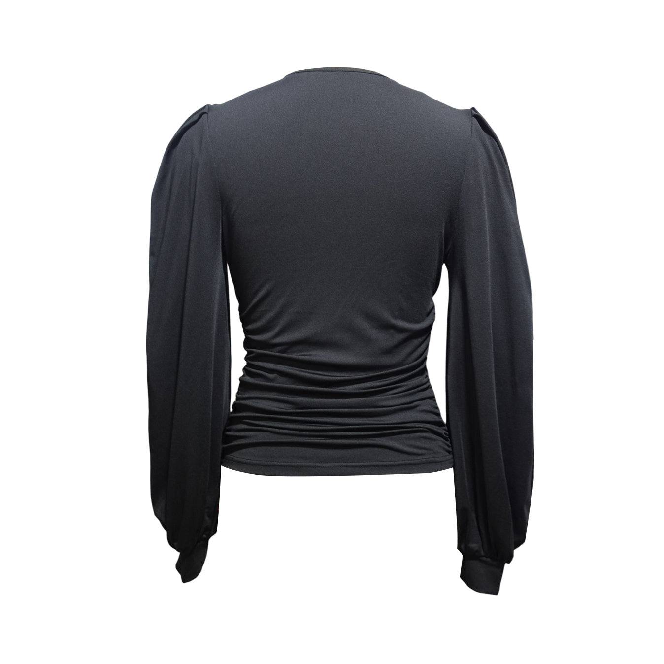 Ladies' Fashionable New Style Low Head Lantern Sleeve Pleated Top Casual V-neck Shirt