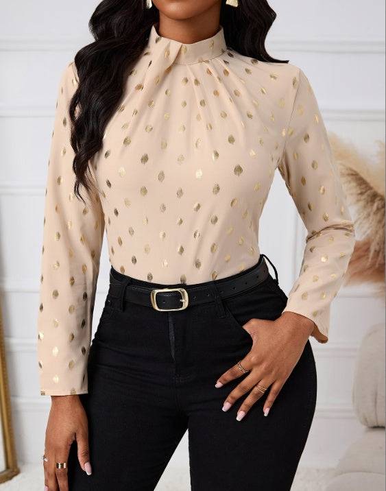 Ladies' Polka Dot Printed Pleated Collar Fashionable Date Commuting Shopping Long Sleeved Shirt