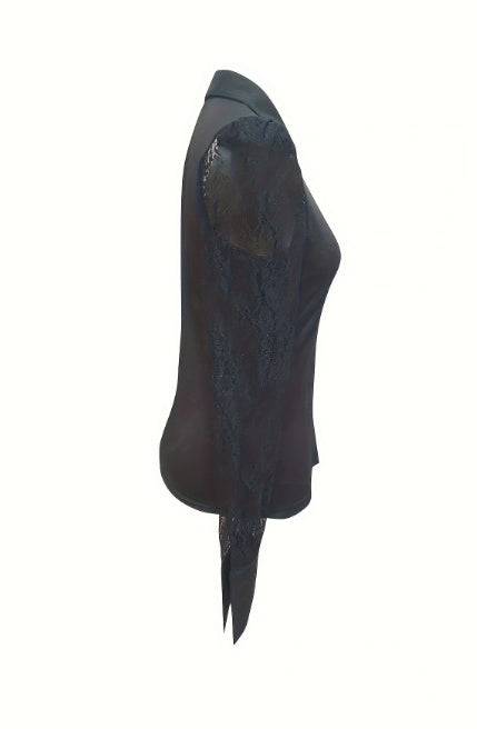 Ladies' Solid Color Mesh V-neck Casual Button Up Shirt