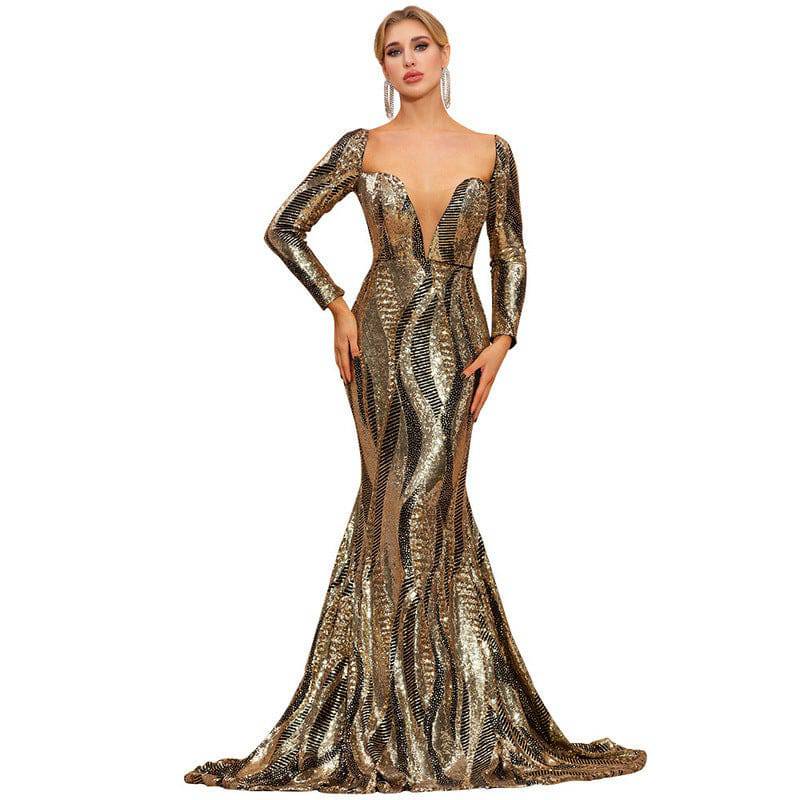Long-sleeved Waist Slimming Banquet Evening Dress Evening Gown