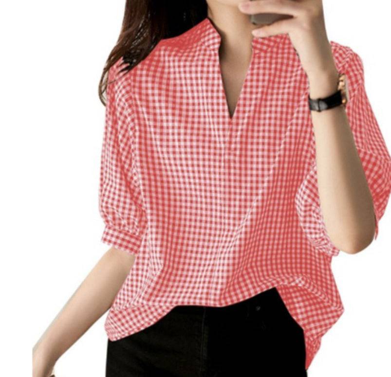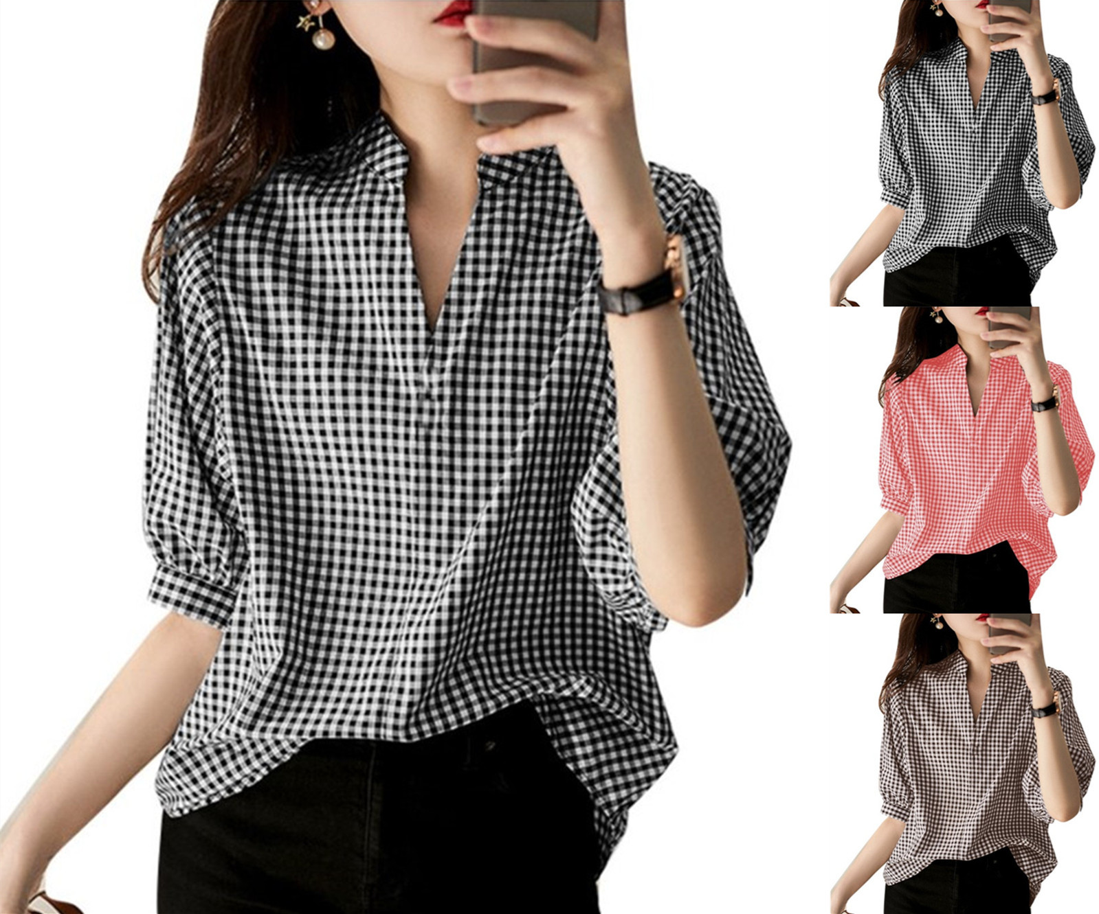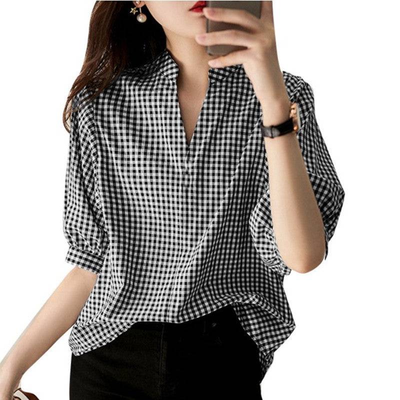 Loose Casual Half Sleeve Plaid Printed Shirt