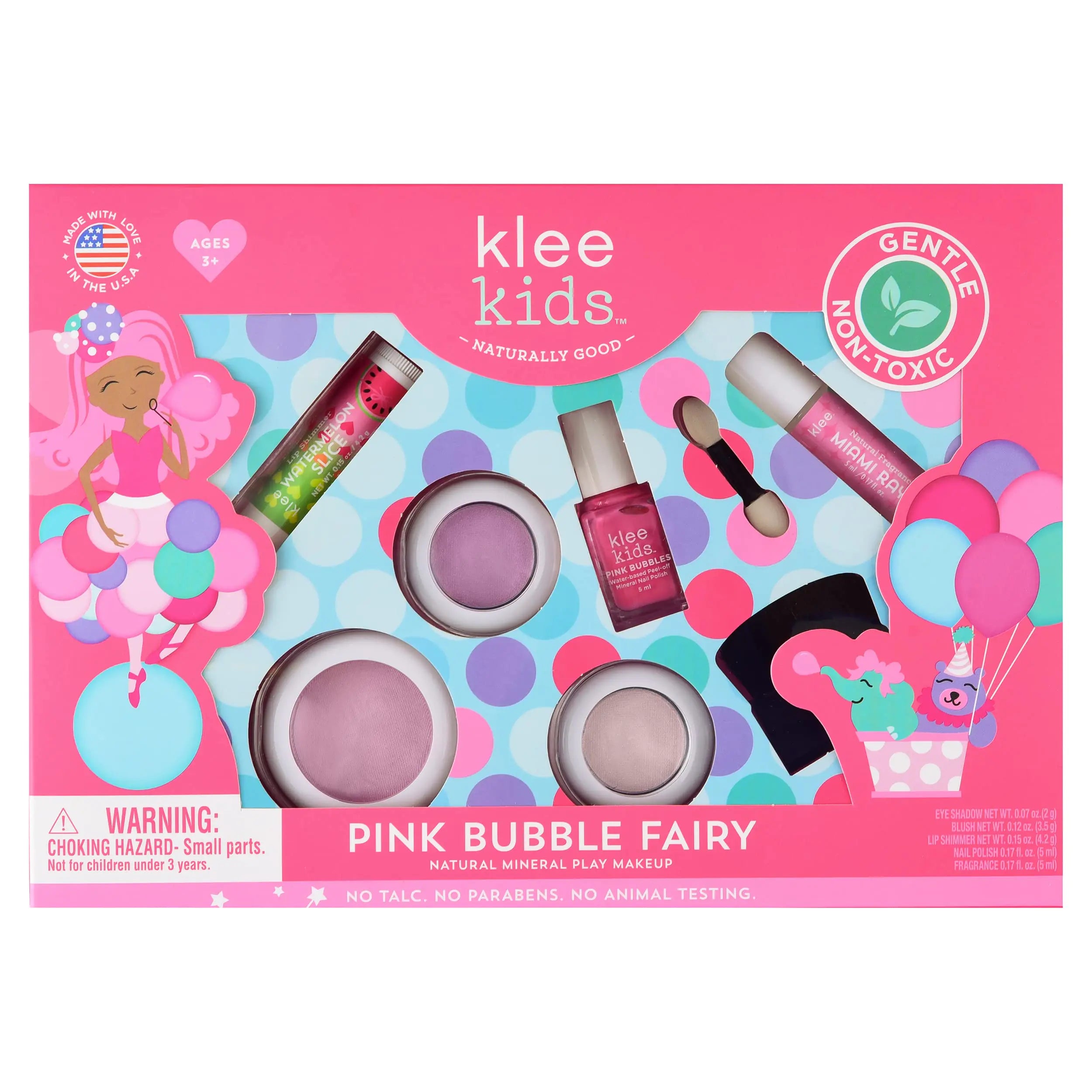Luna Star Naturals Klee Kids Deluxe Play Makeup Kit. Gentle and Non-Toxic. Made in USA. (Pink Bubble Fairy)