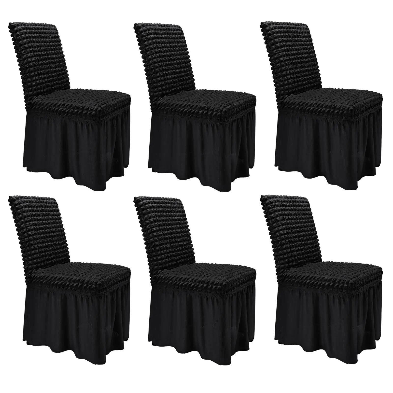 NICEEC High Stretch Chair Covers for Dining Chairs Covers Set of 6 Removable Dining Room Chair Covers with Skirt Spandex Parson Chair Slipcovers Protector for Kitchen Wedding Party Banquet(Black)