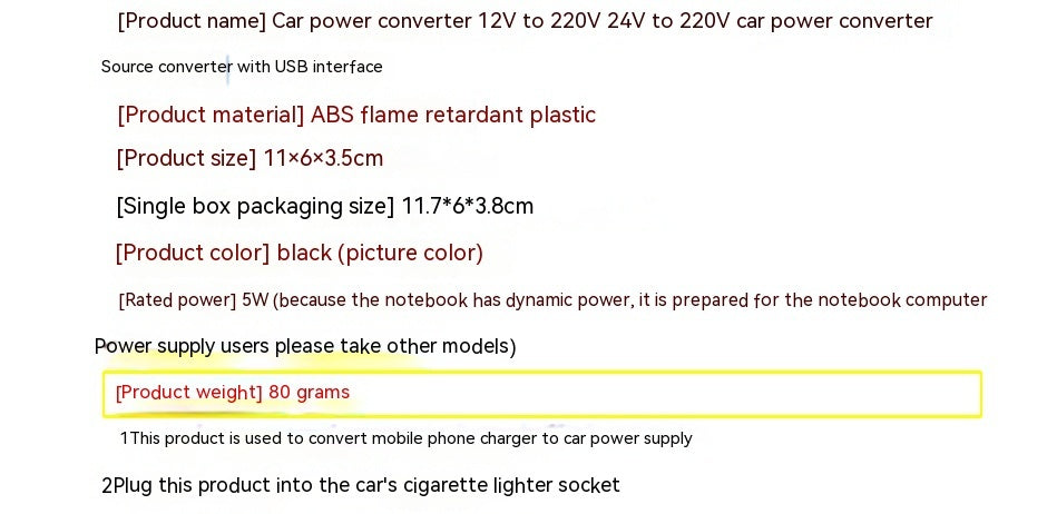 Power Supply Car Transformer Mobile Phone Charging