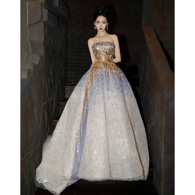 Purple Tube Top Light Miniature High-end Banquet Embossed Toast Dress