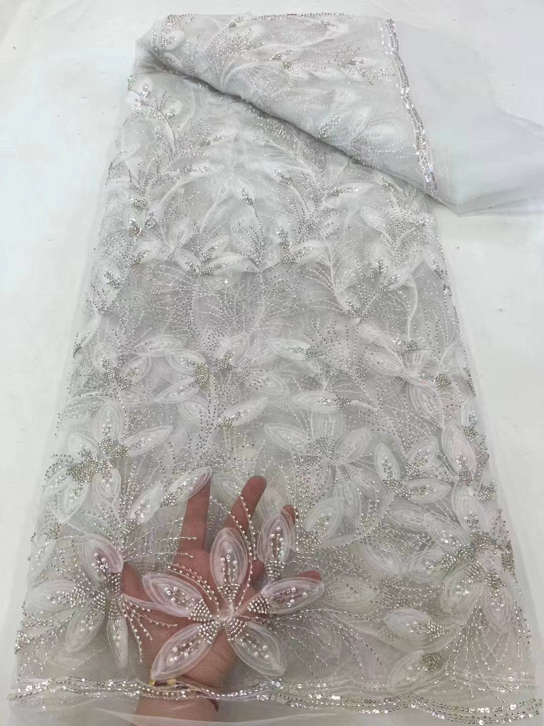 Ribbon Flower Beaded Tulle Lace Fabric Cocktail Party Occasion Evening Dress Embroidered Cloth Lace