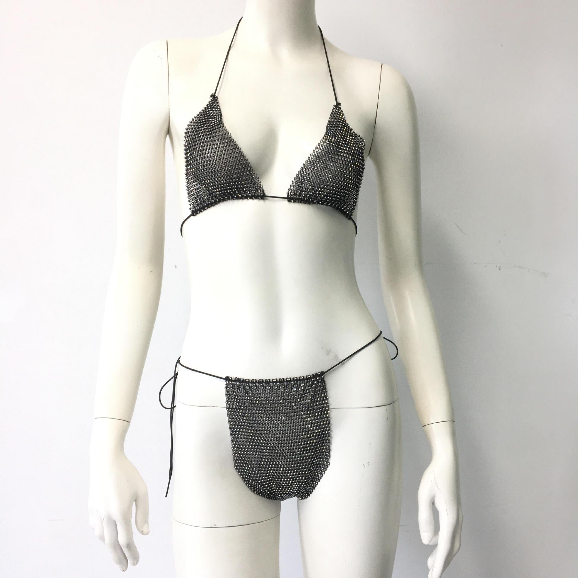 Sexy Stretch Fishnet Rhinestone Tight Group Suit