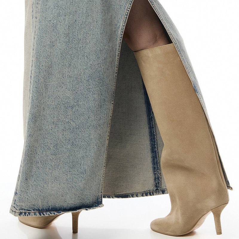 Simple Stitching Square Head Loose Sleeve High-heel Boots