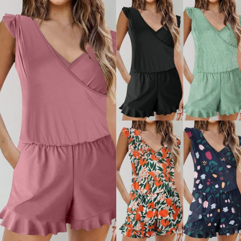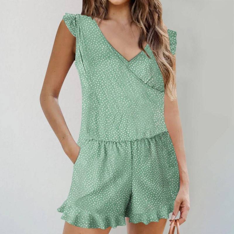 Solid Color Printing Bikini Lotus Leaf Color Slim Fit Fashion Swimwear Women