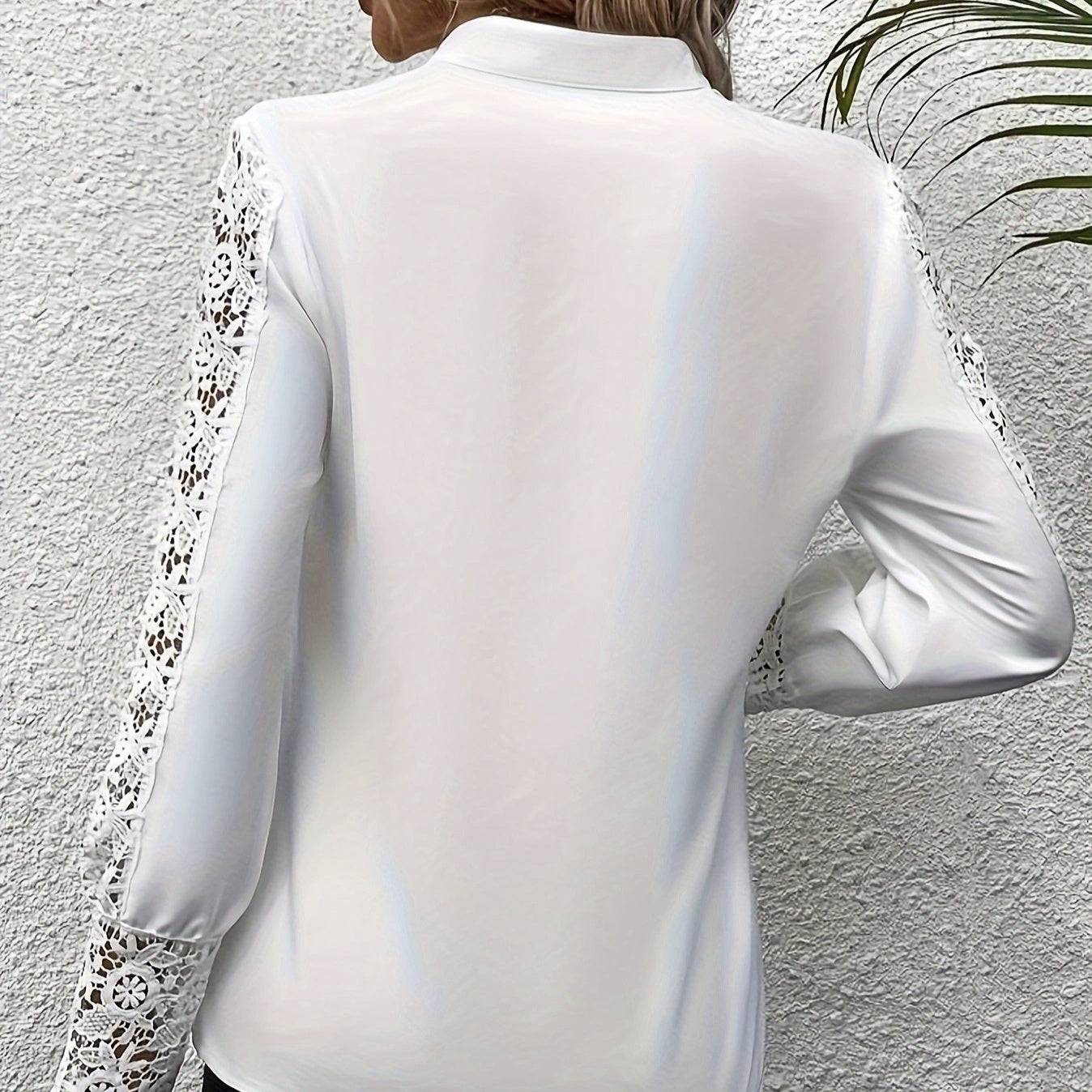 Women's Fashionable New V-neck Lace Patchwork Long Sleeved Top Shirt