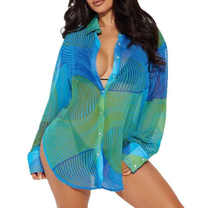 Women's Printed Bikini Blouse Beach Vacation
