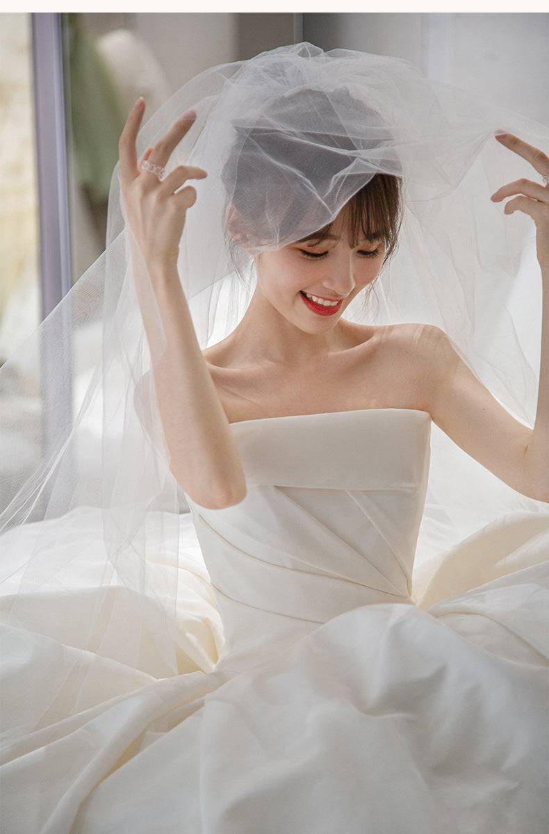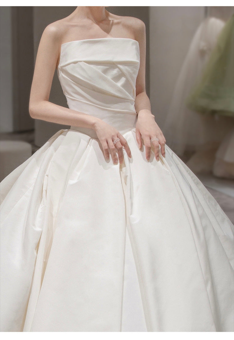 Women's Satin Tube Top Simple Elegant French Style Large Tail Elegant Wedding Dress
