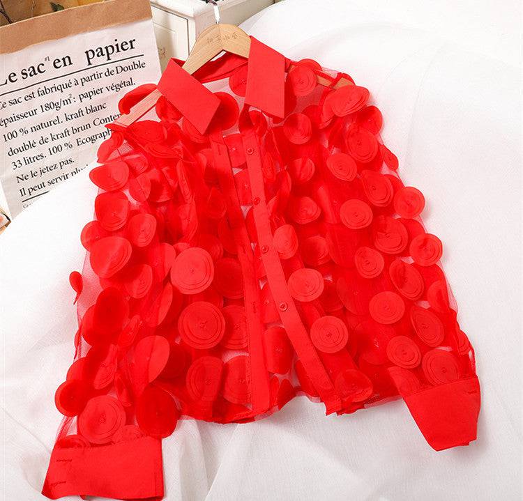 Women's Three-dimensional Flower Chiffon Gauzy Shirt